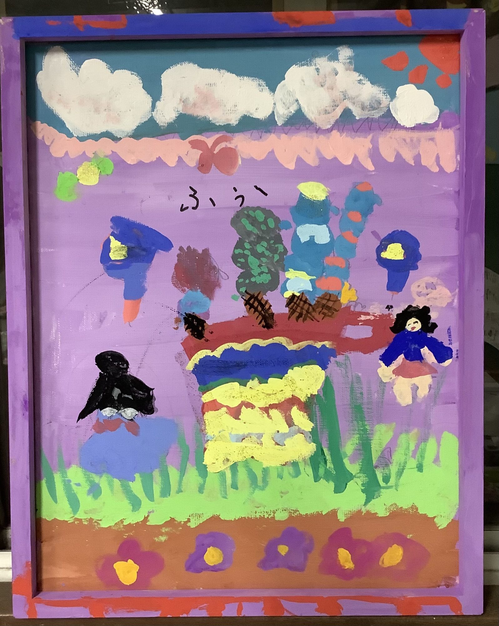 わかめせんせい 先生2025年12月28日 3:47 PM こずえさん 空いっぱいの紫を背景に、アイスクリームや人、植木がふわっと浮かぶように配置されていて、画面全体が夢の中の風景のようですね🍦✨ 色を重ねたアイスの形や、点や線で表された人物から、にぎやかで楽しい気分が伝わってきます😊 「ふう」という文字も、この場所の空気や甘い匂いまで感じさせてくれる大事なアクセントですね🌈 思いついたものをそのまま画面にのせる力は、とても大きな表現の力です。次は、このお店で一番人気のアイスはどれかな?🍨 ログインして返信する ↓