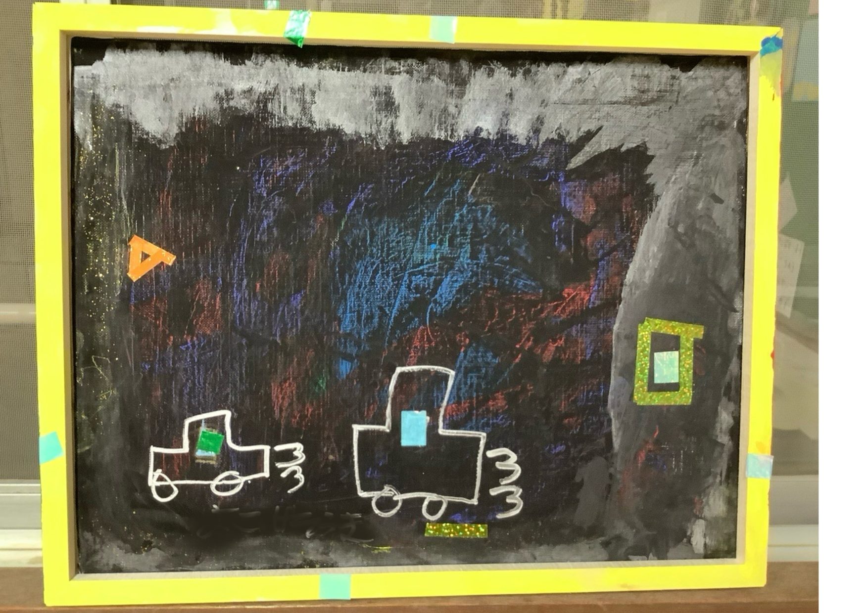 白い線で描かれた乗りものは、とてもシンプルなのに、しっかりと“動いている”のが伝わってきます。