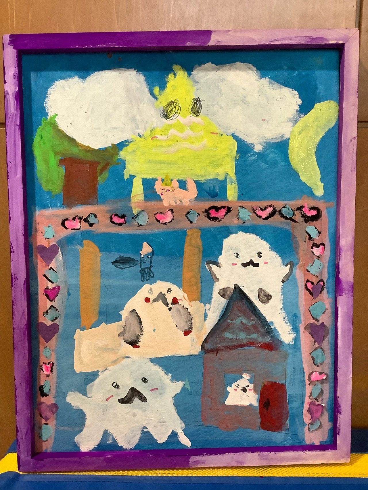 わくのところが、いろとか、かたちがわけられていたり、はーとをきってはってあるのがすごいなとおもいました。とってもイイね!!