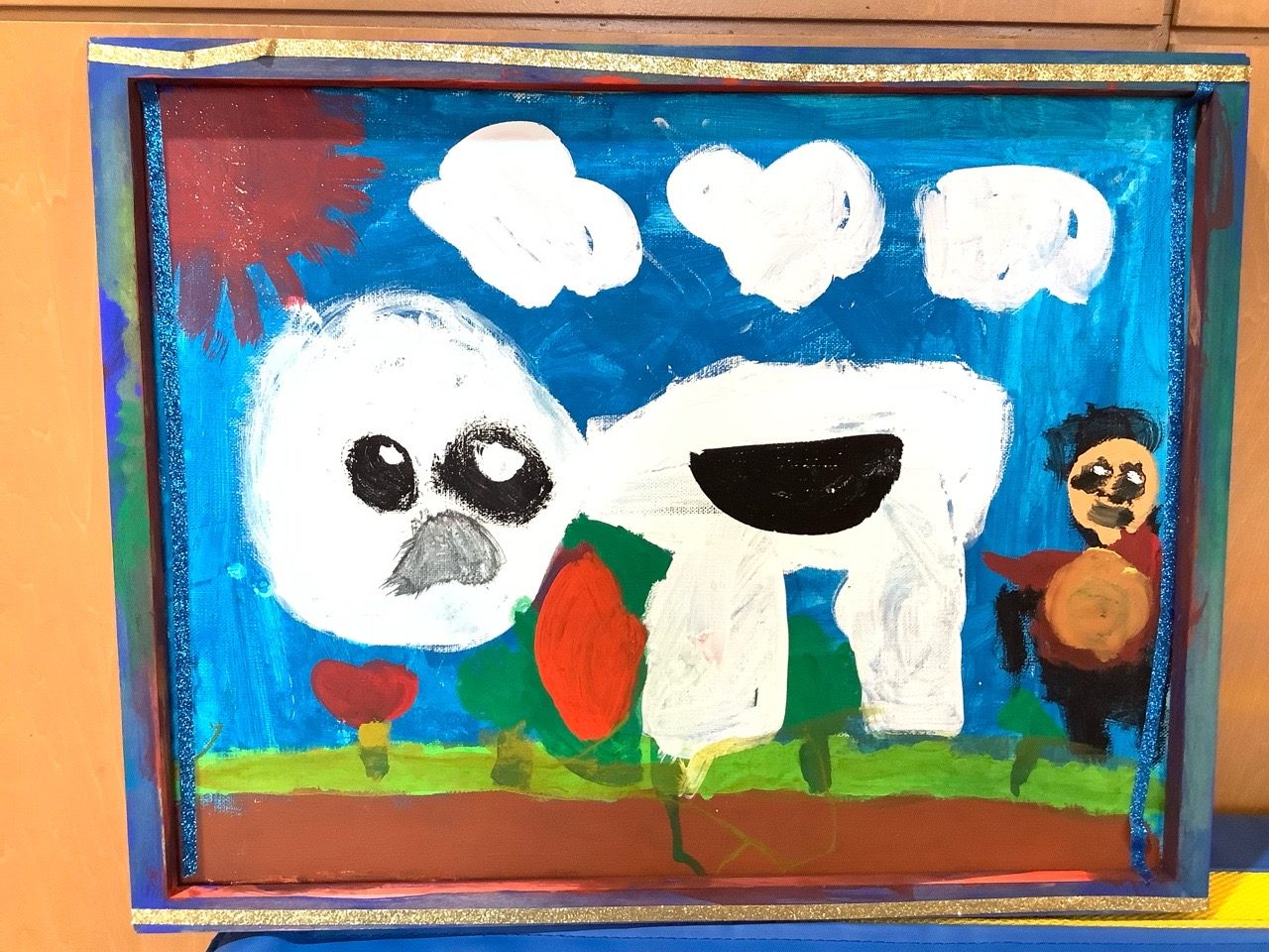 わかめせんせい 先生2025年12月28日 5:04 PM Kさんへ 大きく描かれた白い「わんわんおうじ」が、画面の中心でどんと立っていて、とても頼もしく見えます。 丸い顔や黒い目、太い足の形がシンプルなのに印象に残り、まわりの青い空や雲、赤い花との色の対比も気持ちいいですね🐶☁️🌸 このわんわんおうじは、きっと自分の国や仲間を守っている存在なのかな、と私は想像しました。 堂々としているけれど、どこかやさしさも感じられて、描いている時間が楽しかった気持ちが伝わってきます😊✨ 形を思いきって大きくする力は、とても大事な表現の力です。 次は背景にどんな出来事や仲間を増やすと、物語がさらに広がりそうかな? ログインして返信する ↓
