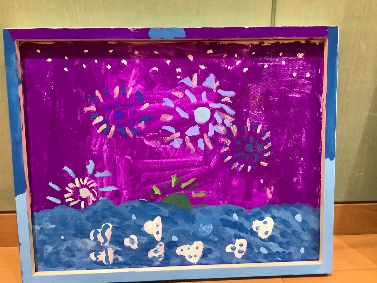 次に花火を描くとしたら、鬼滅の刃という漫画に出てくる狛治という青年と恋雪という少女が一生一緒にいようねという約束するシーンで2人の後ろに花火が上がっているのでその時の絵を描きたいそうです。