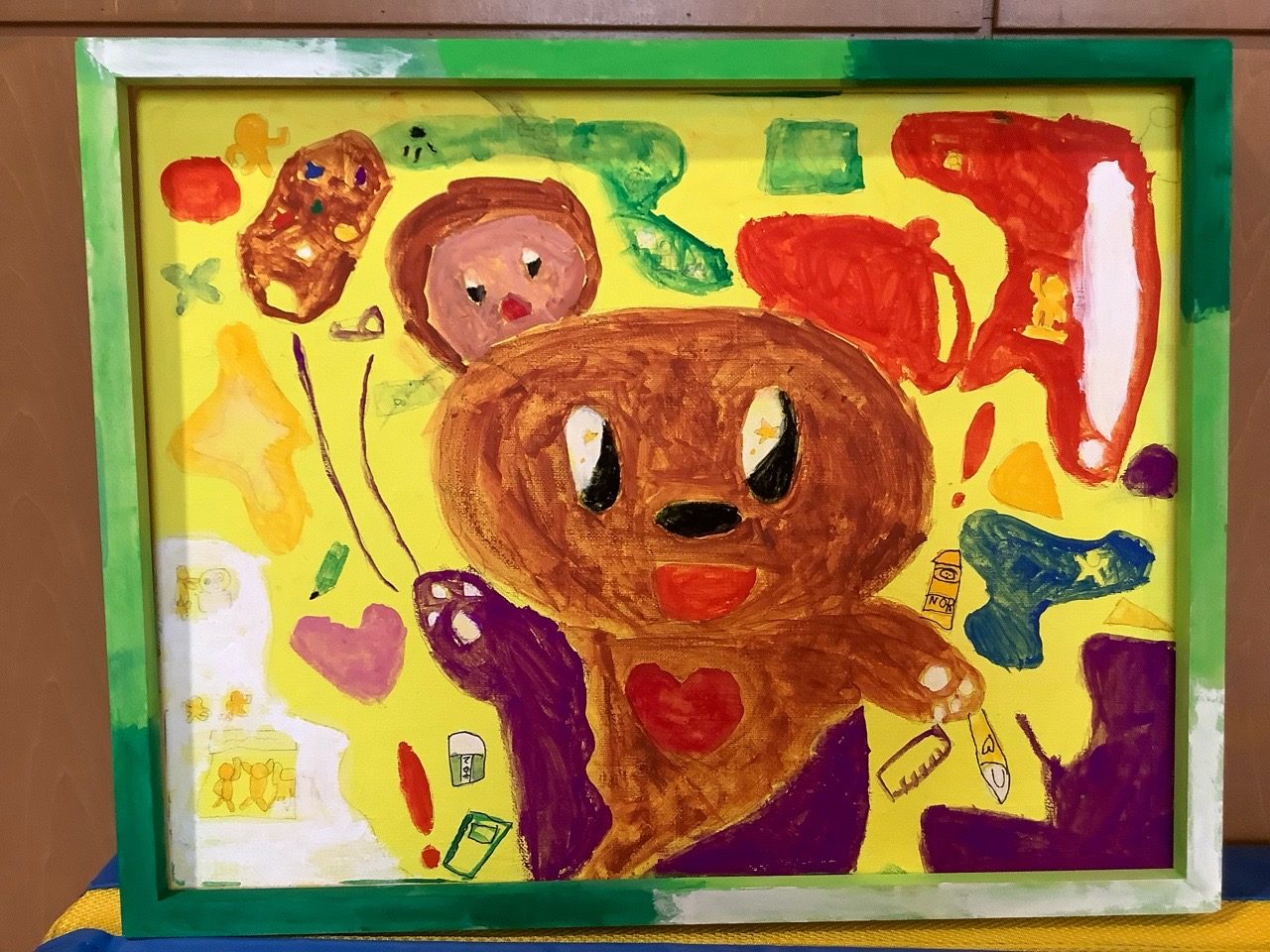 中心のくまをしっかり決めたうえで、まわりに自由な形や色を置いているところは、物語を生む力のある表現です✨