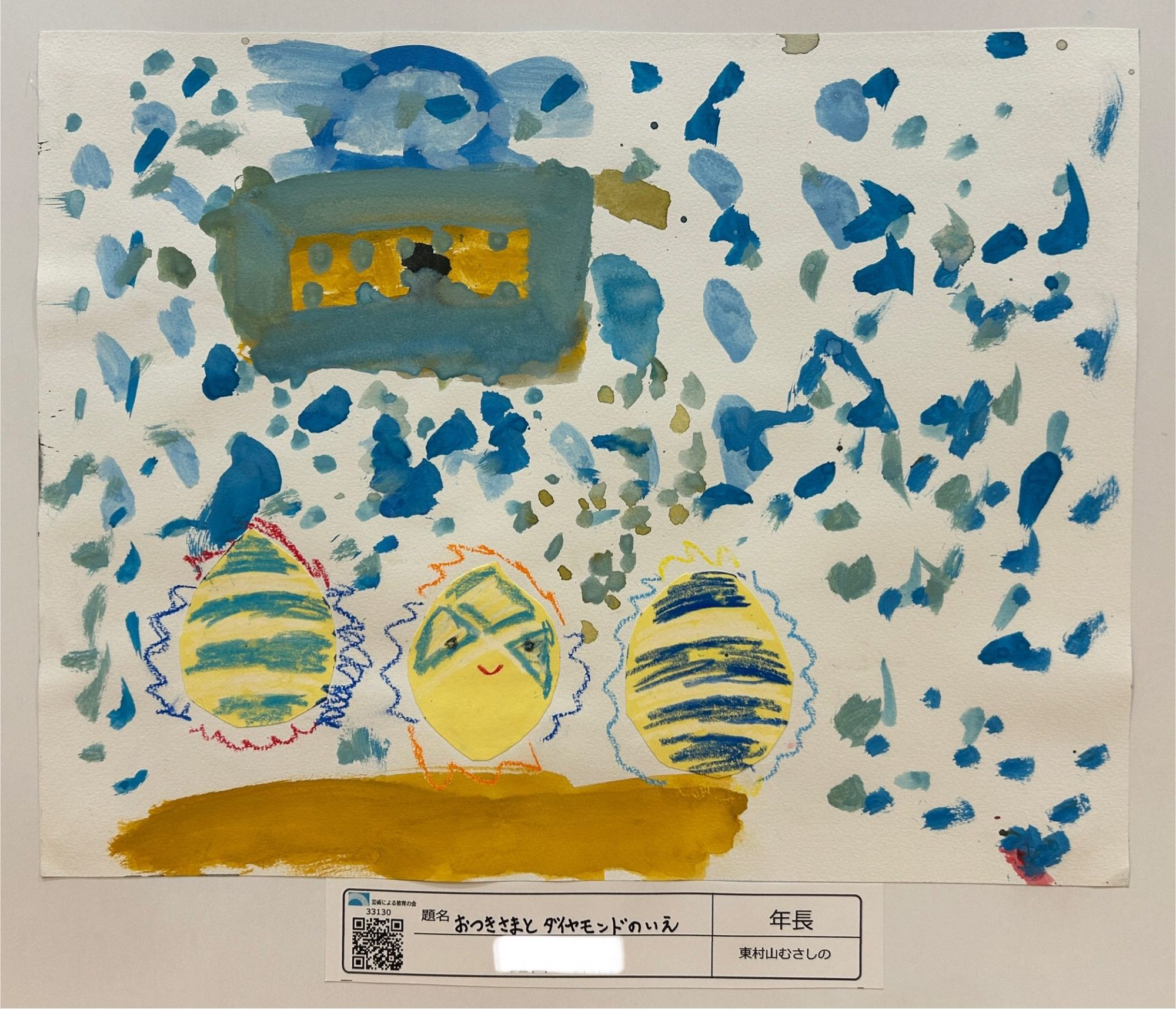 あおいかけらが、えのなかをふわふわとまっていて、よるのくうきがいっぱいにつまっていますね🌙
