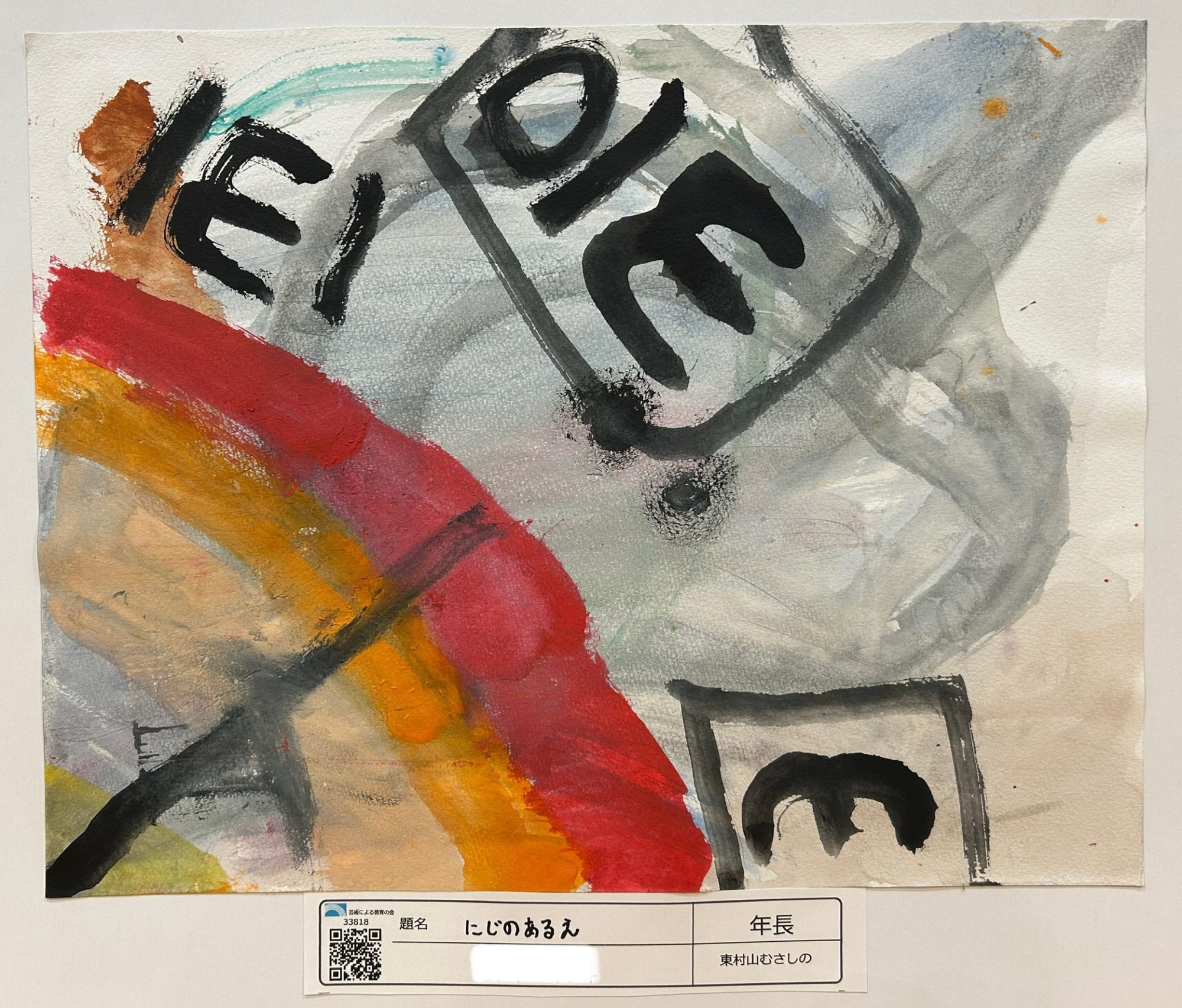 わかめせんせい 先生2026年1月5日 9:15 PM すずきあやとさんへ。 画面いっぱいにひろがるグレーの中に、あかやオレンジのにじが力づよく入りこんでいて、とても印象にのこります。太い黒い線や記号のような形が、えの中を行ったり来たりして、動きやリズムをつくっています。えのぐがかさなったところも、空気がゆれているみたいですね。 どんなことを思いながら、このにじを入れたのかな、と想像しました。 私はこのえを見て、にじが気もちや考えをつないでいるように感じました。色と線で、見えないものまでえがかれているところがすてきです🌈🎨✨ このにじは、どこからきて、どこへいくと思いますか? ログインして返信する ↓