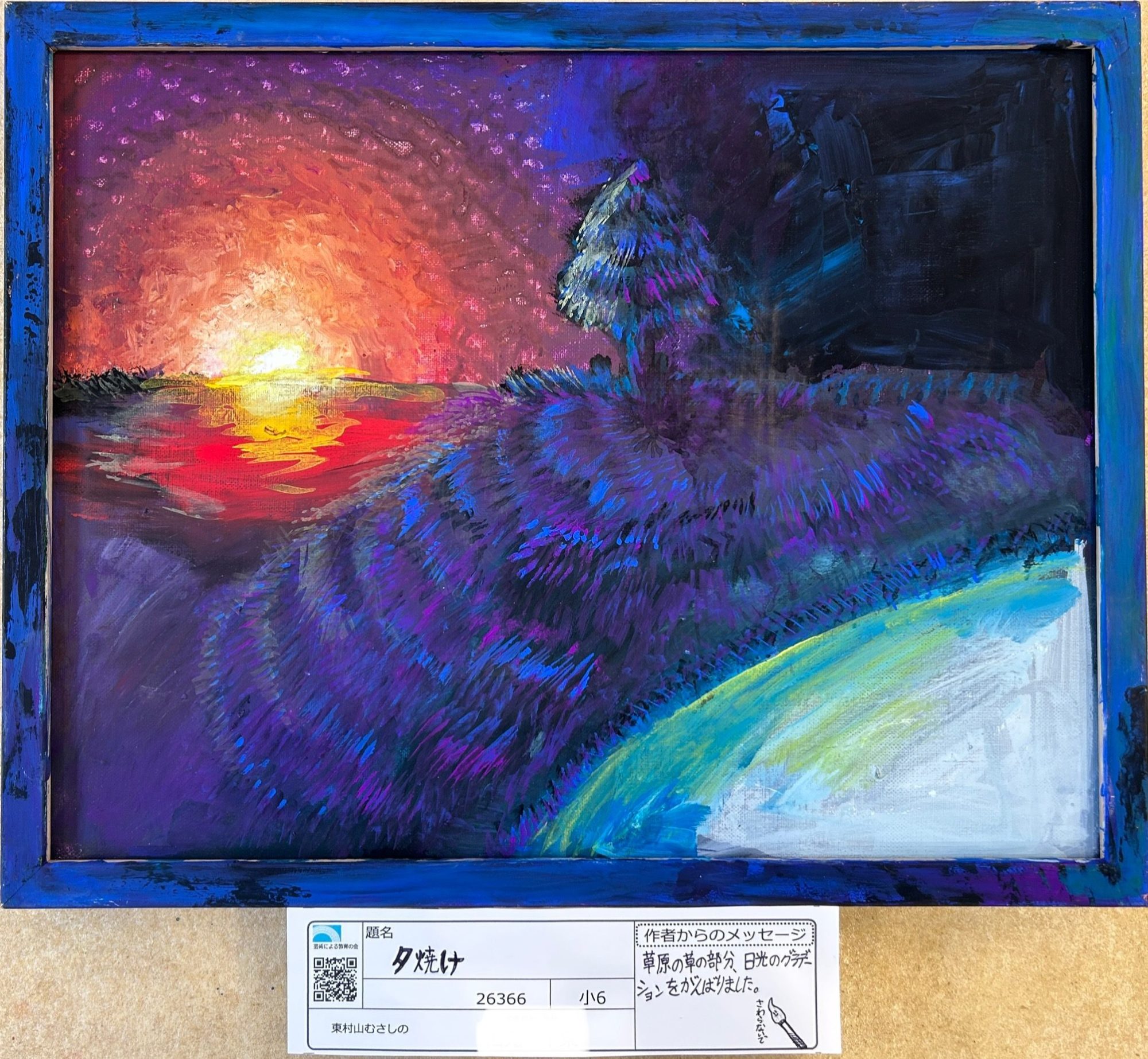 夕日の明るさだけでなく、少しさみしさを含んだ空気まで描こうとしている気持ちが伝わってきました。その場に立って、じっと景色を見つめていたような感覚になります。