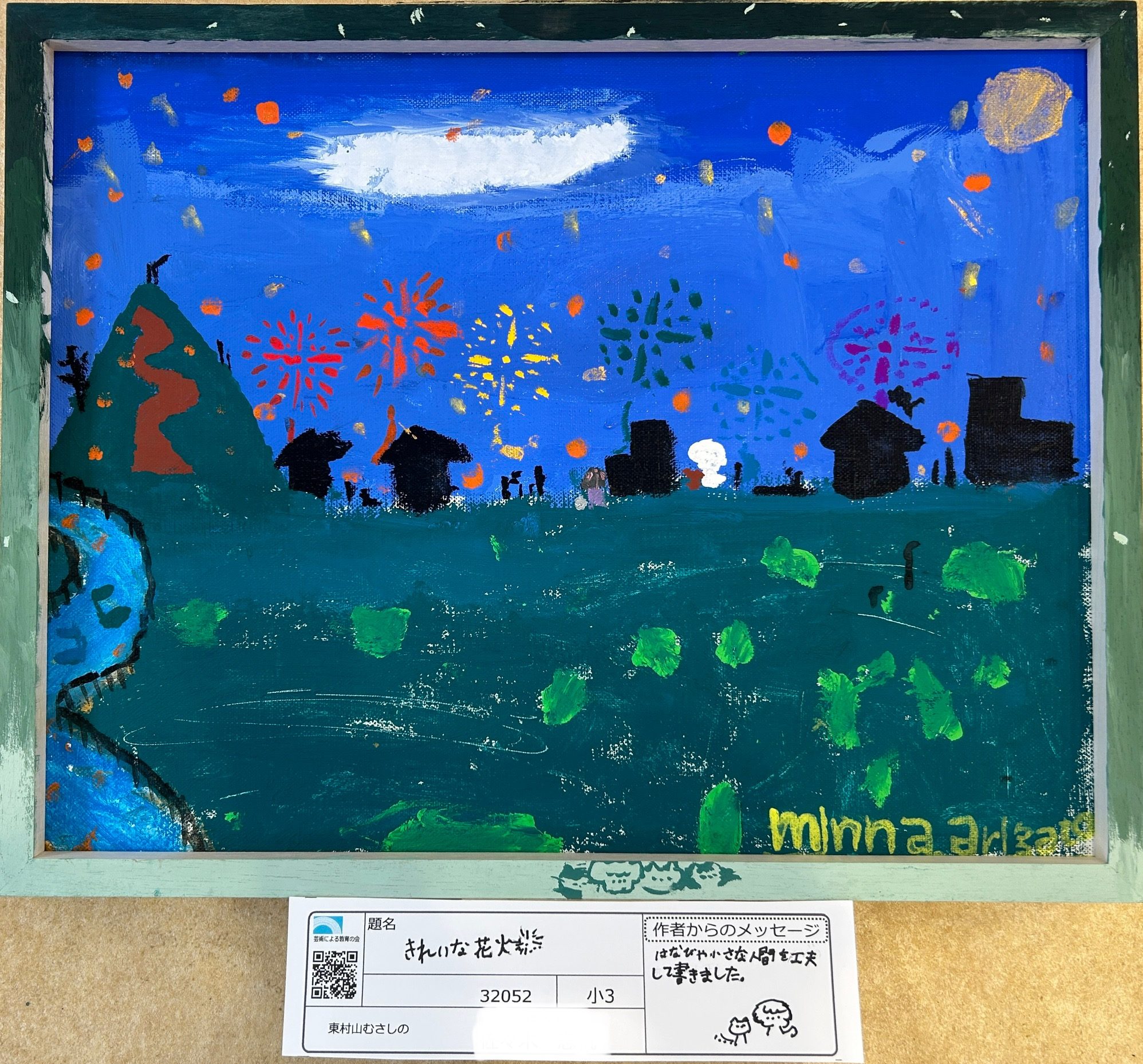 私は、この絵を見て、少し遠くから音が遅れて聞こえてくる花火大会を思い出しました✨