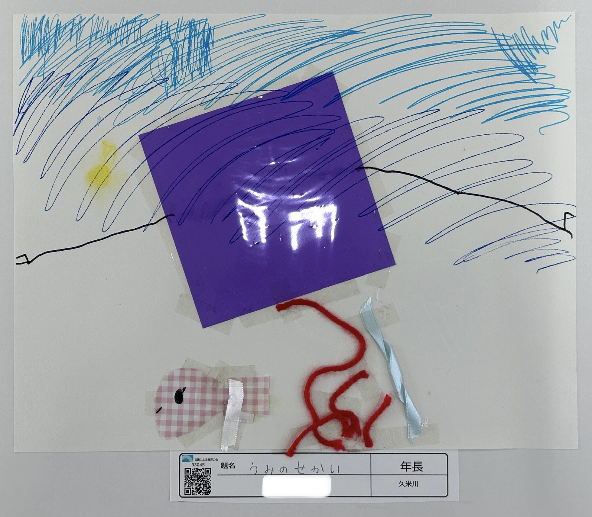 わかめせんせい 先生2026年1月6日 1:28 PM harukaさん。 画面いっぱいに広がる青い線から、うみの大きさやゆらゆら動く感じが伝わってきます🌊✨ まんなかの紫の四角は、深いうみの中の特別な場所のようで、私は少しドキドキしました。 赤いひもや布、テープが使われていて、うみの生きものや流れを体で感じながら作ったように思います🐟🎨 「うみのせかい」という題名から、見えないところまで想像しているやさしいまなざしを感じました。 このうみの中には、どんな生きものがかくれていそうかな?😊 ログインして返信する ↓