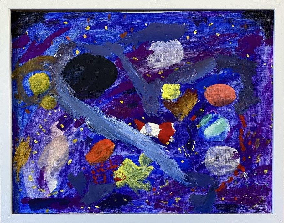私はこの絵を見て、静かな宇宙の中で時間がゆっくり流れているような気持ちになりました。
