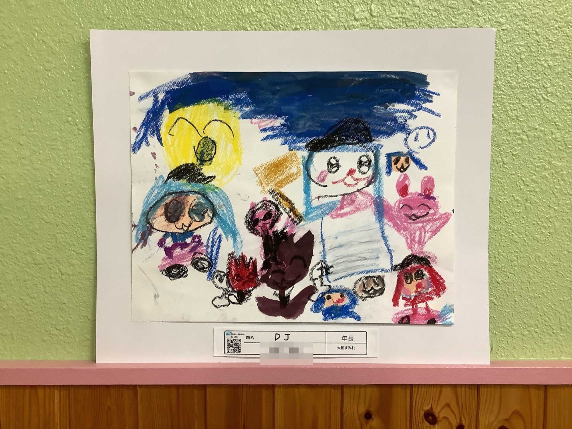 わかめせんせい 先生2026年1月9日 10:13 PM 画面いっぱいに人や生きものが集まっていて、 とてもにぎやかな音が聞こえてきそうな絵ですね。 まんなかの大きな人を中心に、 まわりにいるみんながそれぞれちがう表情や色をしていて、 「楽しい!」という気持ちが重なって広がっているのがよく伝わってきます。 上の青い色は、音や空気がゆれているみたいで、 DJの音楽が会場いっぱいに流れている感じがします。 ひとりひとりをていねいに描き分けているところや、 顔の表情をしっかり描こうとしているところが、とても印象的です。 好きな世界を、思いきり画面に出せていますね。 このDJは、どんな音楽をかけているのかな? つぎは、その音が聞こえるような色や形も、ぜひ描いてみてください。 ログインして返信する ↓