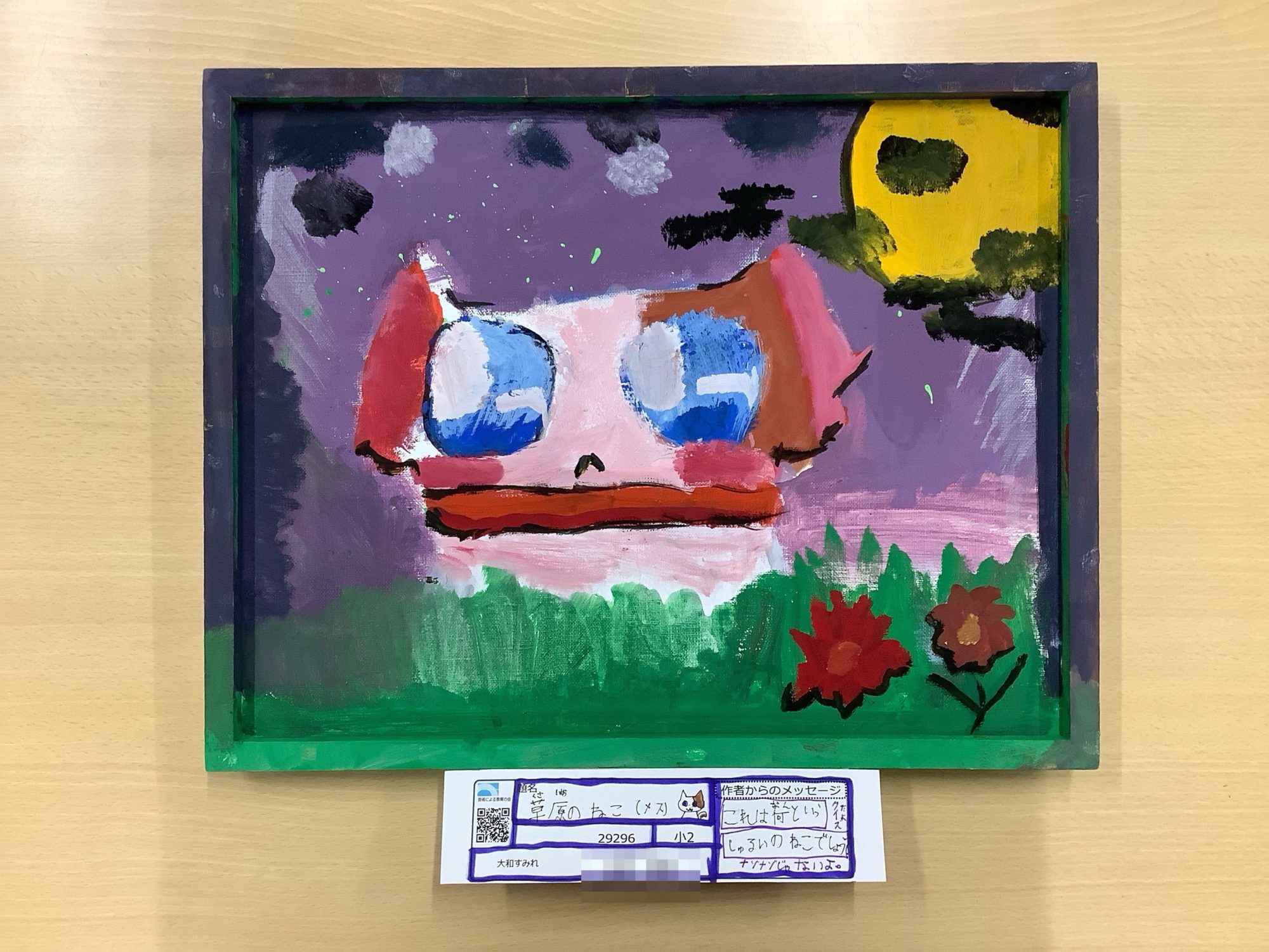 わかめせんせい 先生2025年12月29日 1:35 PM はつみさんへ 大きく描かれたねこの顔と、夜の草原の色の組み合わせがとても印象に残ります。 青い目の中に光が映りこみ、月や雲、草や花までが静かな物語をつくっています🌙🌿 草原にいるねこが、じっと何かを見つめているようで、少しどきどきしつつも安心する気持ちが伝わってきます。 形を思いきって単純にし、色で気配を表しているところが、この世界をはっきり感じさせてくれます✨🎨 このねこは、今どんな音を聞いていると思いますか?🐾 ログインして返信する ↓