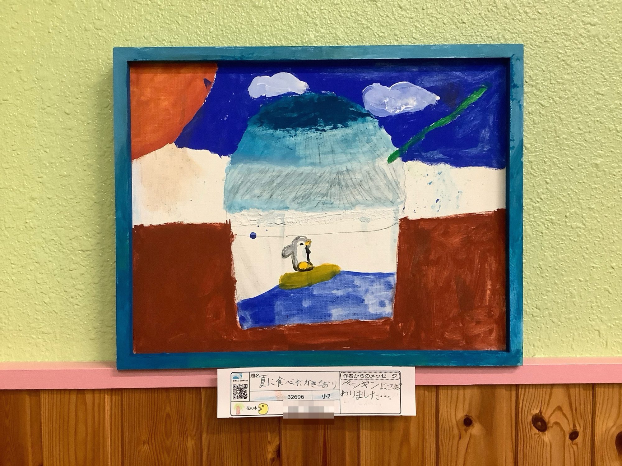 大きなかきごおりがまん中にどーんとあって、青や白のぬり方から、つめたさがつたわってきます🍧