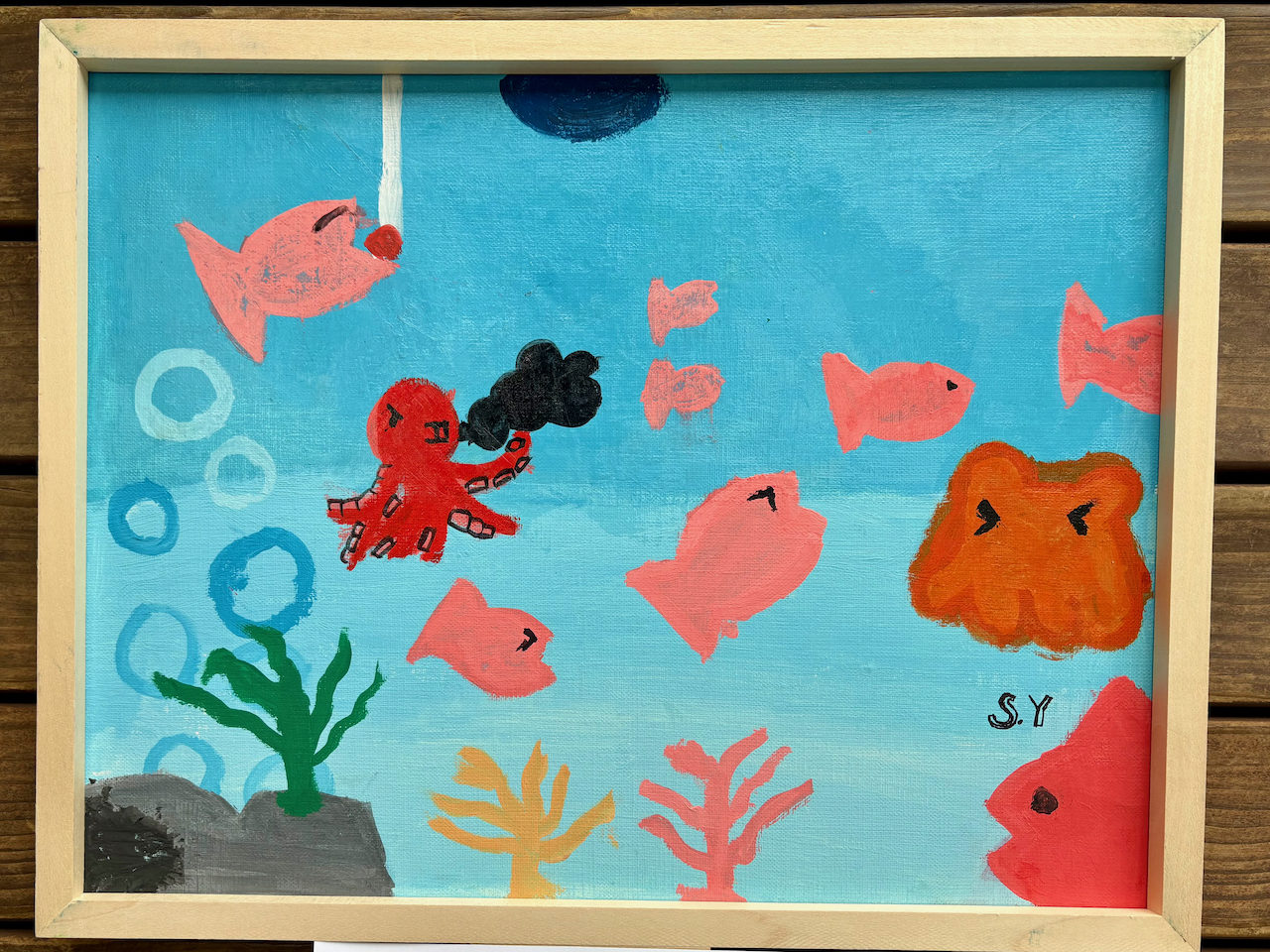 たこの足や魚の目がくっきりしていて、「ここが大事」というところをしっかり見て描いている感じがしますね。🌊