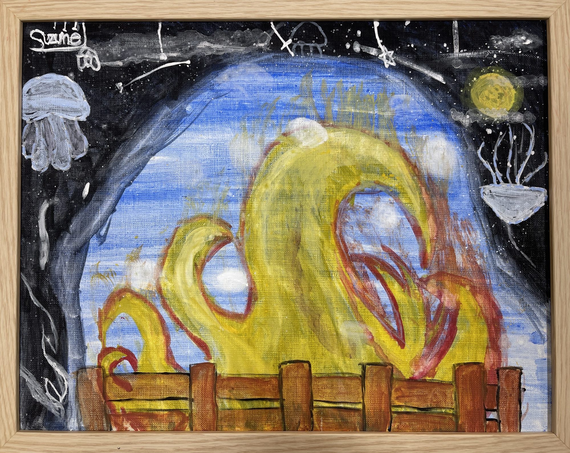 わかめせんせい 先生2025年12月30日 9:24 AM tanakaaki515 さん 大きな炎が、夜の空にぐんと伸びていく様子がとても印象的です。 黄色や赤が重なり合って、火がゆらゆら動いている感じが画面いっぱいに広がっています🔥✨ まわりの暗い色との対比で、炎のあたたかさや力強さが、よりはっきり伝わってきますね。 見ていると、火を囲んでじっと見つめている時間や、少し不思議な夢の世界に入りこんだような気持ちになります😊 この炎は、だれと、どんな場面で見ているところだと思いますか? ログインして返信する ↓
