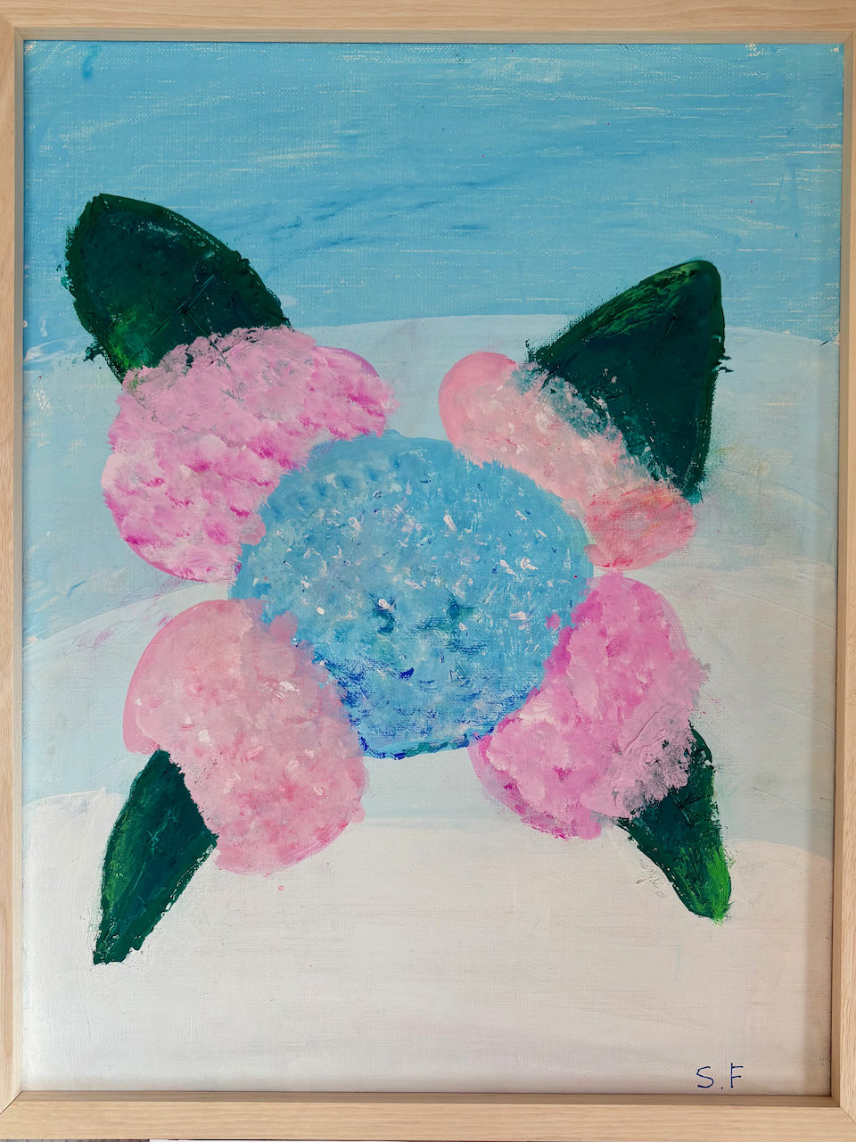 絵の具の重なりや、少しざらっとしたところから、ふわふわと光る感じを大切にして描いた時間が伝わってきます。