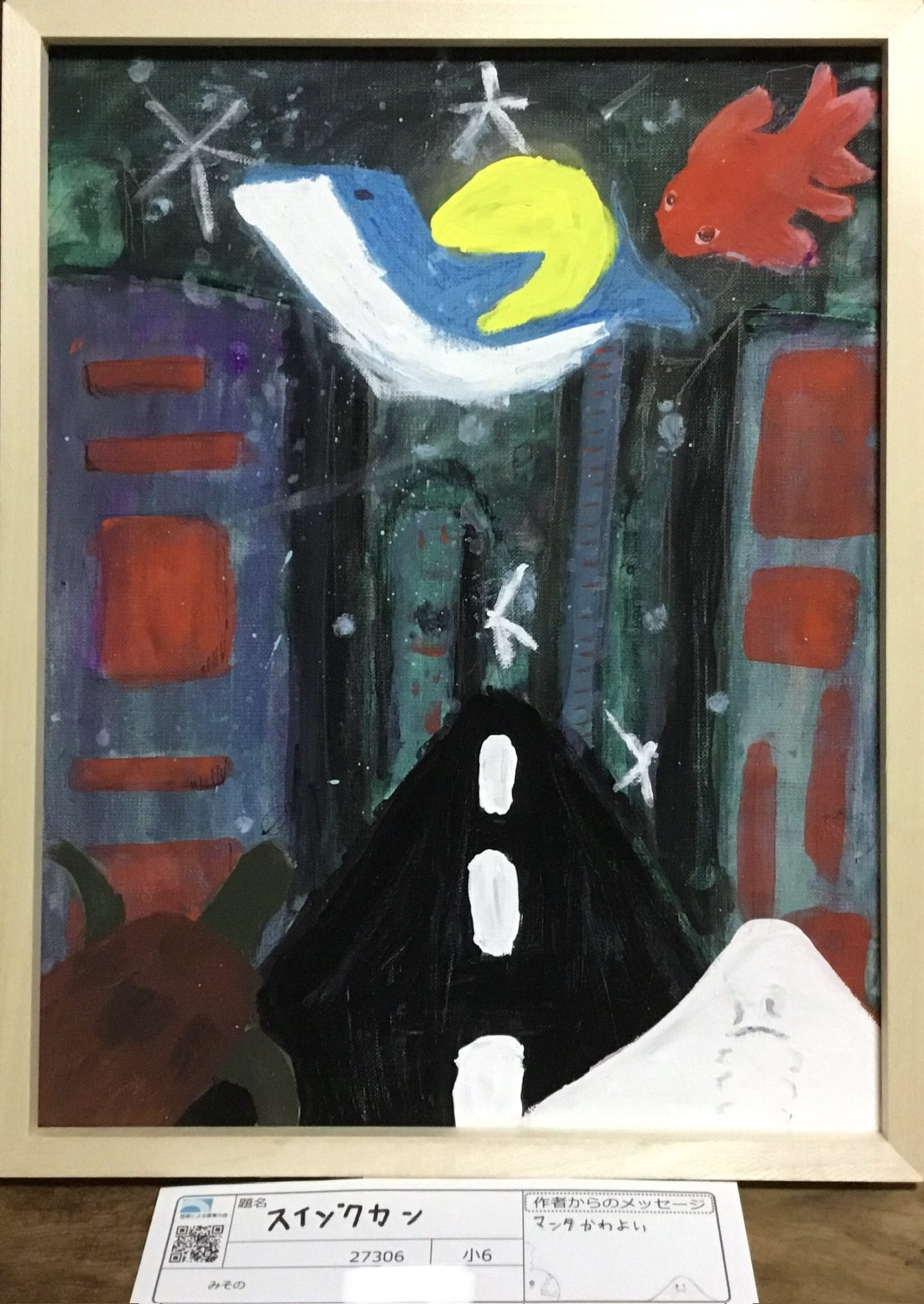 わかめせんせい 先生2025年12月30日 5:35 PM Yoshizawaさん。 暗い通路が奥へとのび、白い点線や高い建物のような形が画面に強いリズムをつくっています。 青と黒を中心にした色づかいの中で、黄色や赤の生きものが浮かび上がり、水族館の不思議な明かりや気配が伝わってきます🐟🌙 まっすぐな道と舞う星のような形が重なって、現実と想像が行き来する空間になっています✨ この道の先には、どんな生きものや景色が待っていると思いましたか?🫧 ログインして返信する ↓
