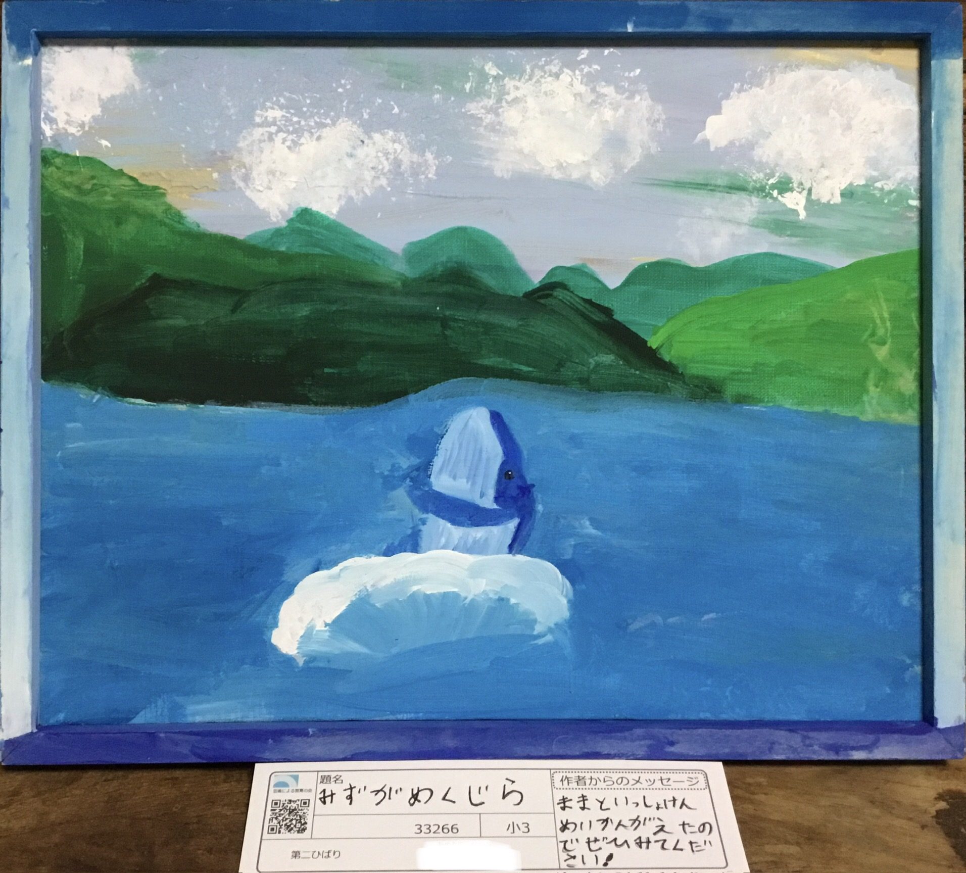 形をシンプルにまとめたことで、湖の静けさとくじらの存在がはっきり心に残ります✨