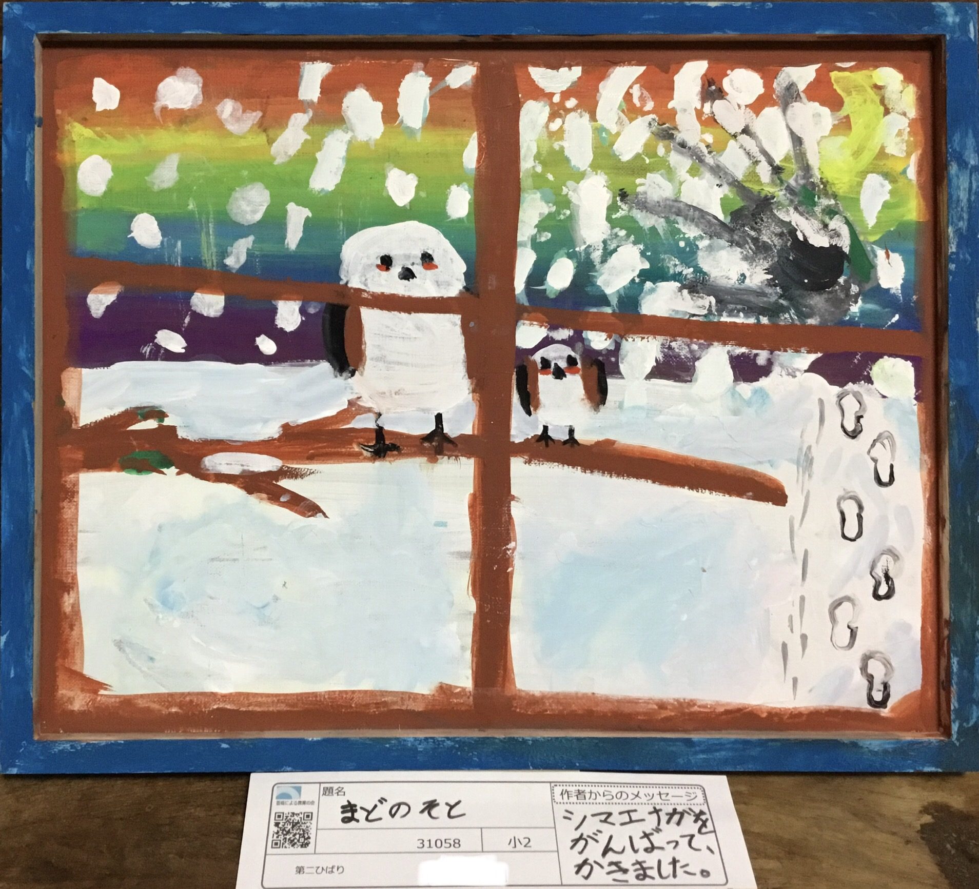 わかめせんせい 先生2025年12月30日 5:53 PM がんぺんさんへ。 窓の木枠が画面を分けていて、外の世界をそっとのぞいている感じが伝わってきます。 雪の白と空のにじ色、枝につもる雪のタッチが重なって、静かな冬の時間が流れています❄️🌈 シマエナガたちが同じ場所にとまっている様子から、外の寒さの中でも安心している気持ちを想像しました。 白い絵の具の置き方に工夫があって、雪の軽さやふわっとした感じがよく表れています🕊️✨ 私は、この窓の中と外のちがいを行ったり来たりしながら見ていました。 このあと、シマエナガたちはどんな動きをすると思いましたか?😊 ログインして返信する ↓