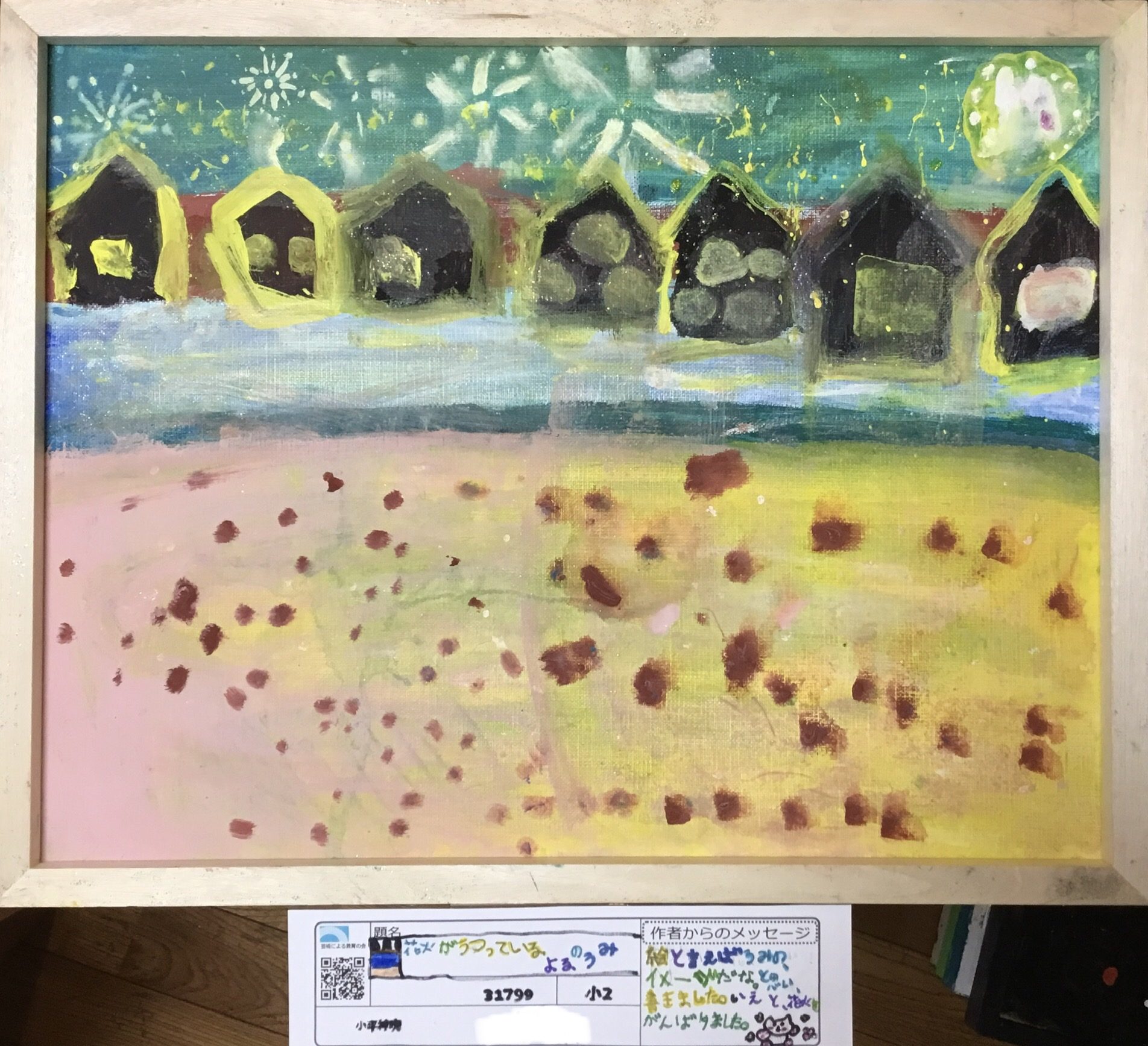 わかめせんせい 先生2025年12月31日 5:19 PM せなさん。 夜の海に映りこむ花火のひかりが、黄色や黄緑、やわらかな白で広がっていて、水面がゆっくり揺れているように見えます。上の並んだ家の形や、空に散った点や線が、にぎやかな夜の気配を静かに伝えています 🎆🌙 花火の音が遠くから聞こえて、少しわくわくしながら海を見つめていた気持ちが、この画面に残っているように感じました 🙂 光が水にうつる様子を、こんなふうに色で感じ取っているところがとても印象に残りました ✨ この海を見ているとき、せなさんはどんなことを考えていましたか? ログインして返信する ↓