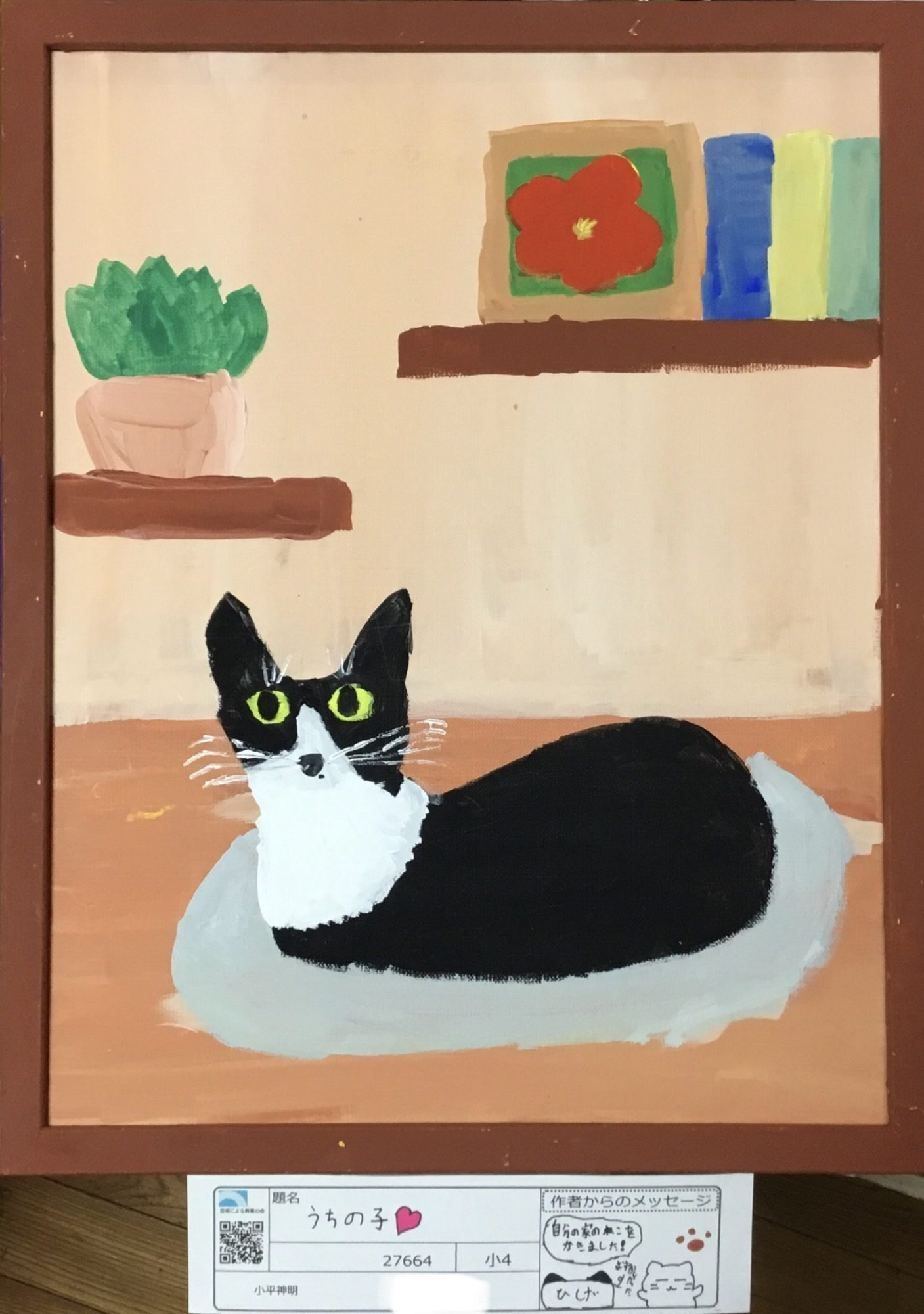 背景の棚や鉢植え、本まで描かれていることで、「うちの子」が過ごす日常の空気がしっかりと画面に広がっています 📚🌱