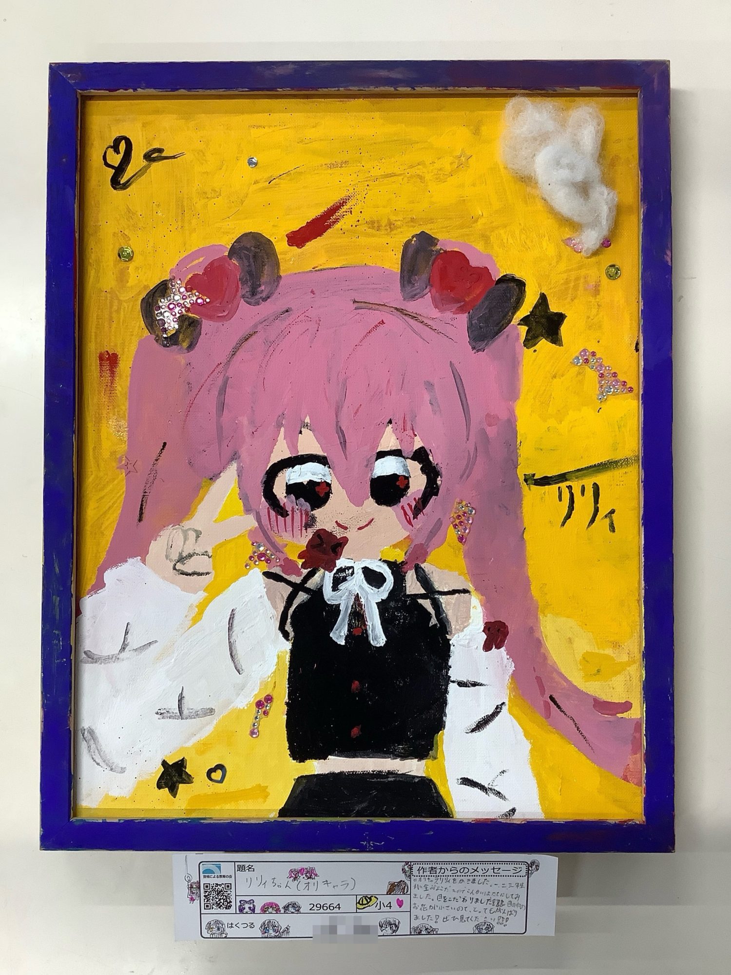 黄色の背景に、ピンクの髪と、こだわった大きな目がはっきりと浮かび上がり、目の中の花が個性となり、画面の中心にリリィちゃんの存在がしっかりと立っています。