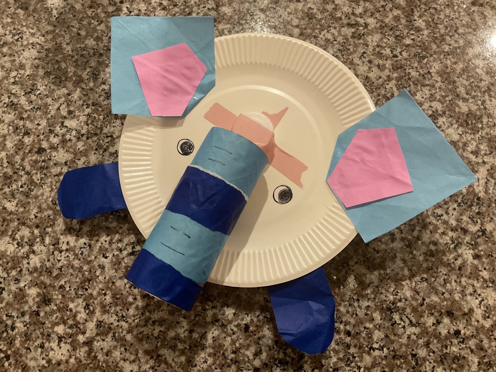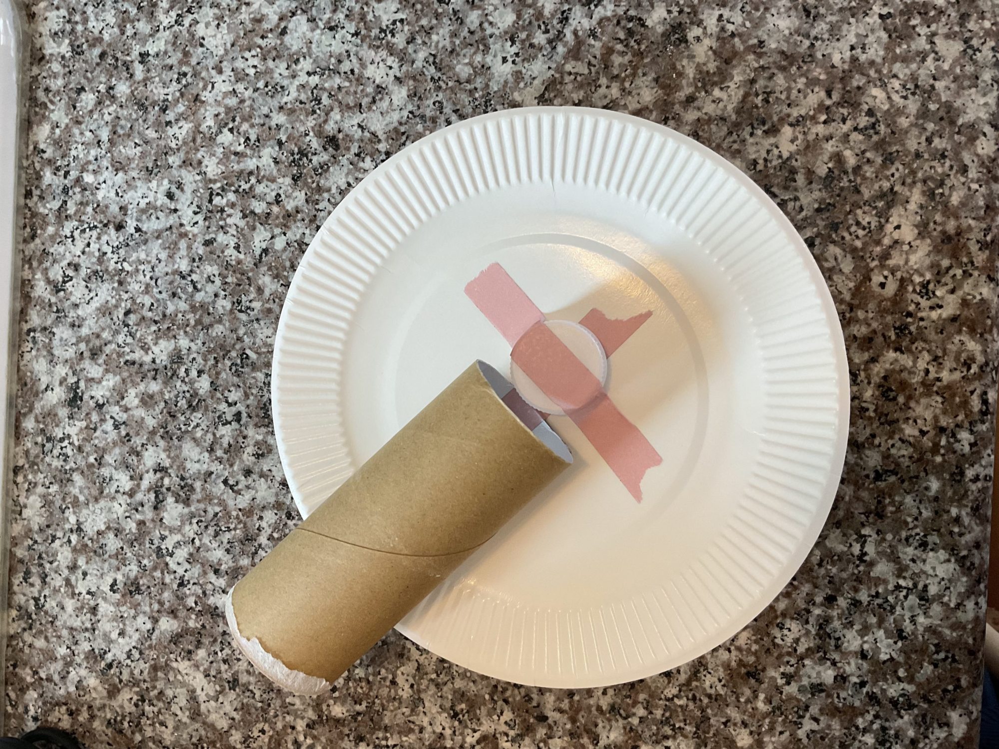 くるくると回りながら、思いもよらないかたちへと姿を変えていくこのコマを見ていると、年少さんたちの探求そのものが形になったようで、とても胸が温かくなりました。紙皿と芯という身近な素材なのに、角度や貼り方ひとつで「もっと回るかな?」「バランスどうかな?」と、子どもたちと一緒に考え続ける時間が作品にそのまま刻まれていますね。