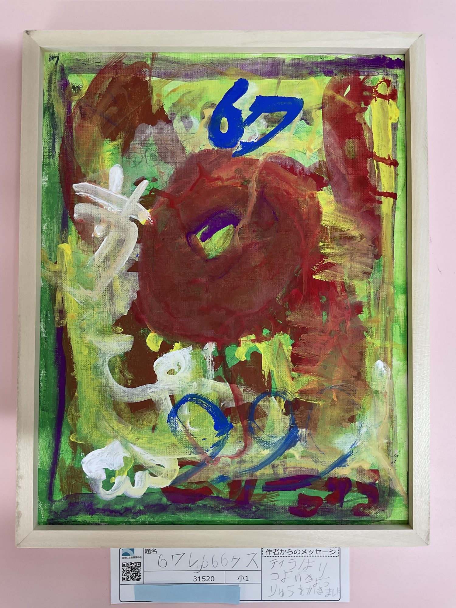 画面いっぱいに重ねられた赤や緑、黄色の色が、勢いのある動きとして残っていて、筆の通った道そのものが見えてくるようです。