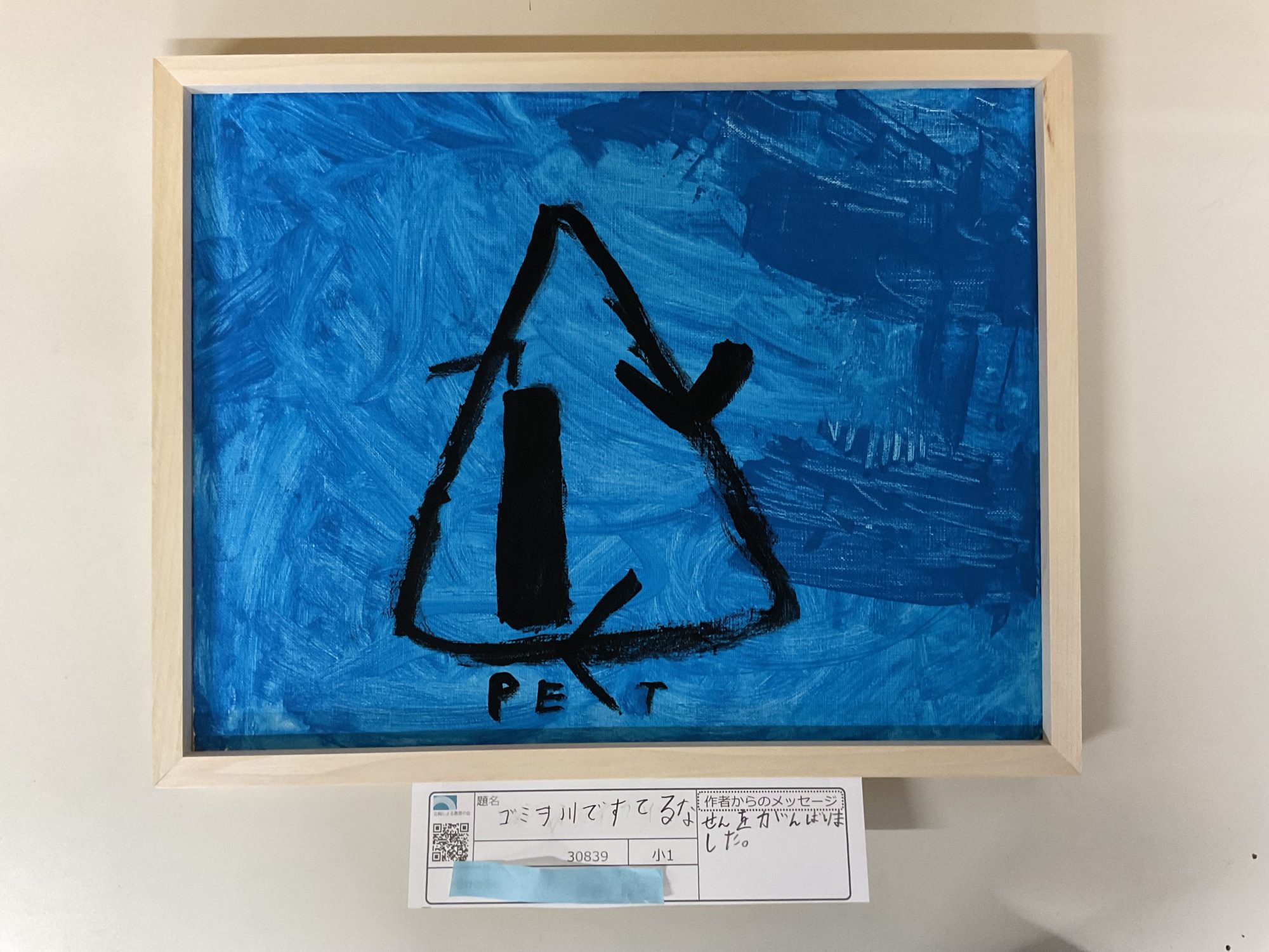 わかめせんせい 先生2026年1月1日 5:44 PM satoshiさん 青い画面いっぱいに、力強く描かれた三角のマークと、まっすぐ立つ黒い形。 線は少ないのに、目に入った瞬間に「伝えたいこと」がはっきりと伝わってきます。 背景の青も、一色ではなく、ぬり重ねた筆の動きがそのまま残っていて、画面に勢いがあります🎨 「ゴミをすてないで」という気持ちを、むずかしい絵にせず、 だれが見ても分かるマークにしたところが、とてもかしこい選び方です。 文字と絵をいっしょに使うことで、言葉だけよりも強く心に届いてきますね👀 この絵からは、 「ちゃんと伝えたい」「気づいてほしい」というまっすぐな気持ちが感じられます。 小さな声でも、はっきりした形にすると、こんなに強くなるんだなと教えてくれる作品です✨ もしこのマークを、もっとたくさんの人に見せるとしたら、 どんな場所にあったら一番いいと思いますか?🌱 ログインして返信する ↓