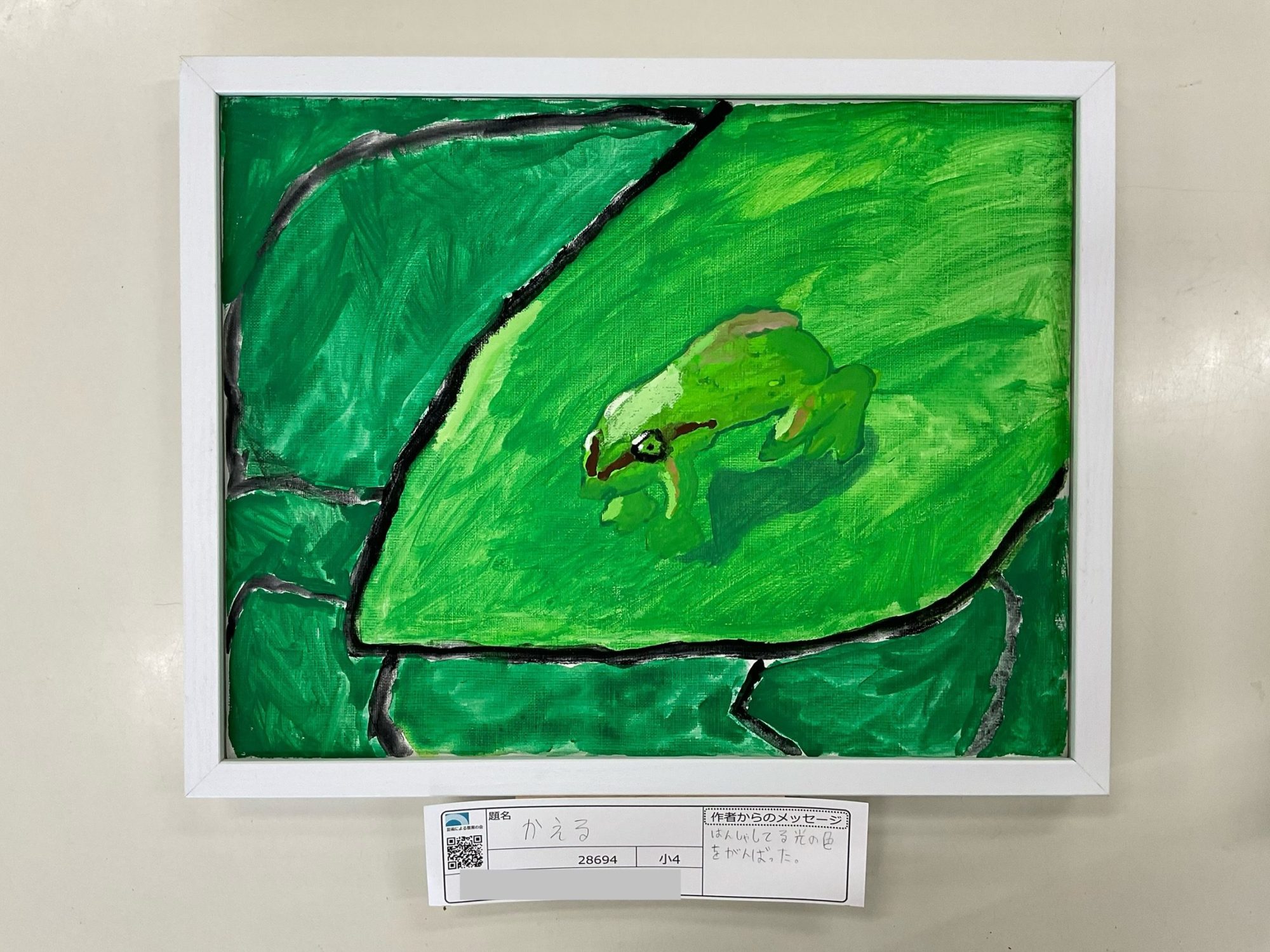 葉っぱの線が力強く描かれていて、その中にいるかえるが、とても守られているように見えました🌿🐸