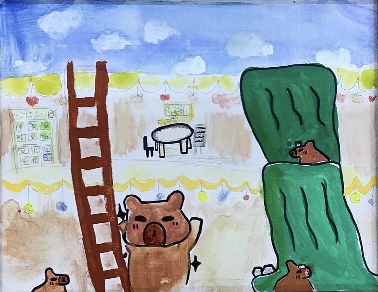 わかめせんせい 先生2026年1月2日 3:54 PM りなさん カピバラたちの町が、あたたかくゆったりとした空気の中に広がっていて、とてもほほえましい世界ですね🐾♨️ 大きな温泉にぷかっとつかっているカピバラの姿からは、気持ちよさが伝わってきて、見ている私までほっとしました。 はしごやテーブル、奥のにぎやかな飾りつけなど、町のくらしが細かく描かれていて、りなさんが想像した物語を丁寧に形にしているのがよくわかります✨ 私は、この町でカピバラたちと一緒に散歩してみたくなりました。 この町には、ほかにどんな場所やお店があるのかな? ログインして返信する ↓
