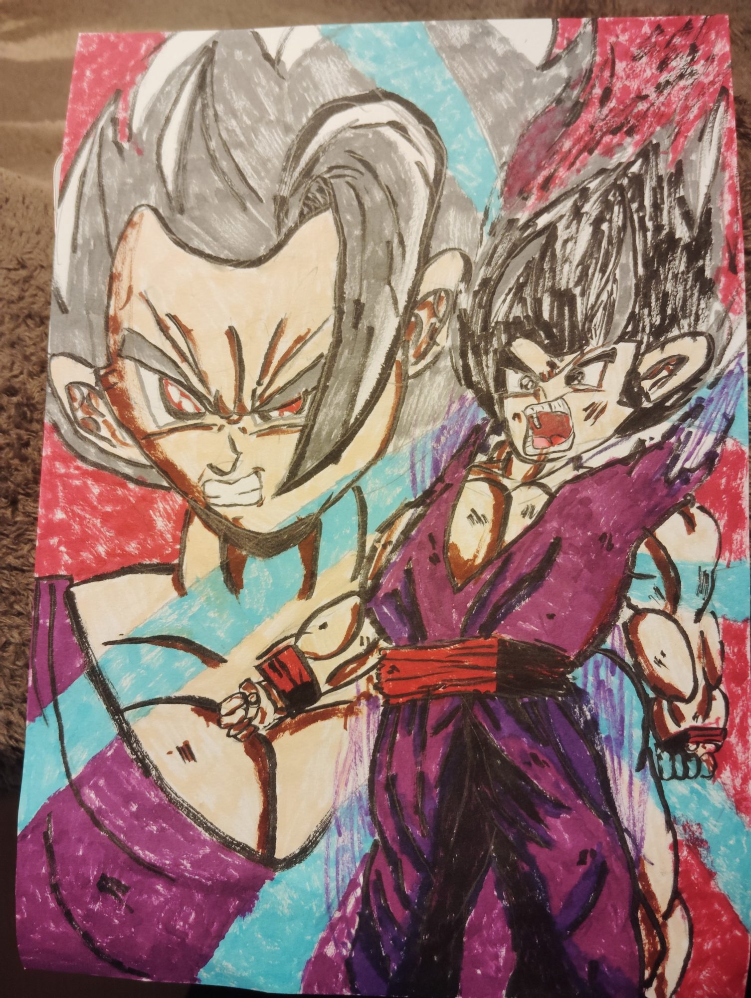 画面いっぱいに広がるスーパーサイヤ人ビースト悟飯、力強さと迫力が存分に伝わってきますね。大きな構図で二つの表情を描き分けているところに、hanaさんの観察力と表現したい気持ちの強さを感じました。