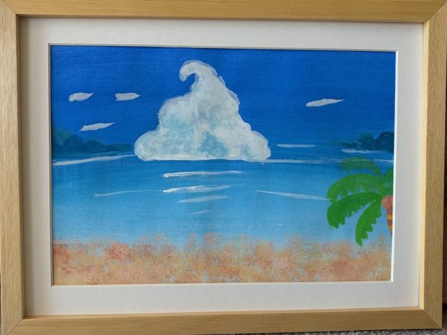 わかめせんせい 先生2026年1月4日 10:18 AM nuts2301 さん 青い空と海がまっすぐ広がる中に、白い雲がぽんと浮かび、目を引きます☁️🌊 雲の形がソフトクリームのようで、なめらかな線や重なりが、とてもやさしい印象です。 砂浜の色やヤシの木の配置も、画面にリズムをつくっています。 空に浮かぶ雲を見て、「これだ」と思う形を見つけた気持ちが伝わってくるようでした。 身近なものと自然の景色をつなげる発想に、表現の楽しさが感じられます。 私は、この景色を見て、思わず笑顔になるような軽やかな気持ちになりました🍦✨ この雲は、どんな味のソフトクリームだと思って描いたのかな? ログインして返信する ↓