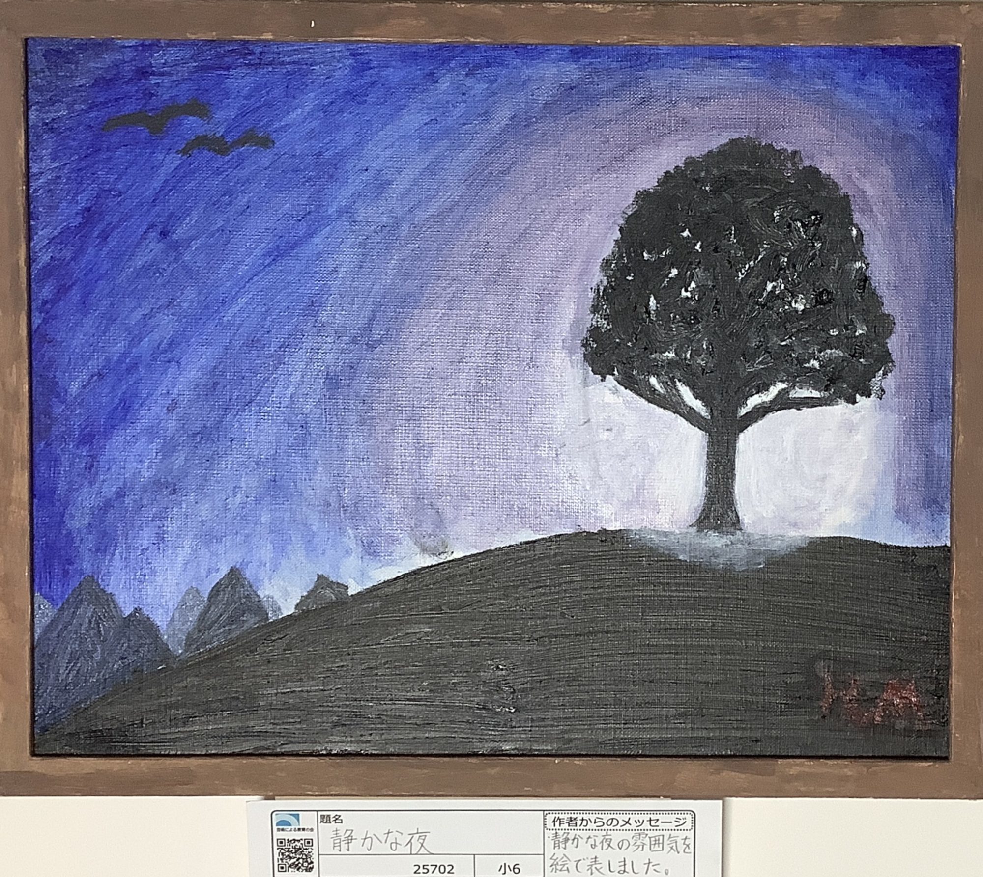 題名カードにある「静かな夜の雰囲気を絵で表しました」という言葉のとおり、音のない世界を大切に描いた気持ちが伝わってきました。