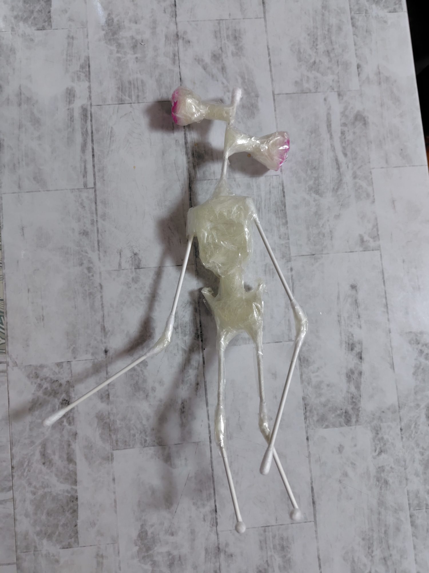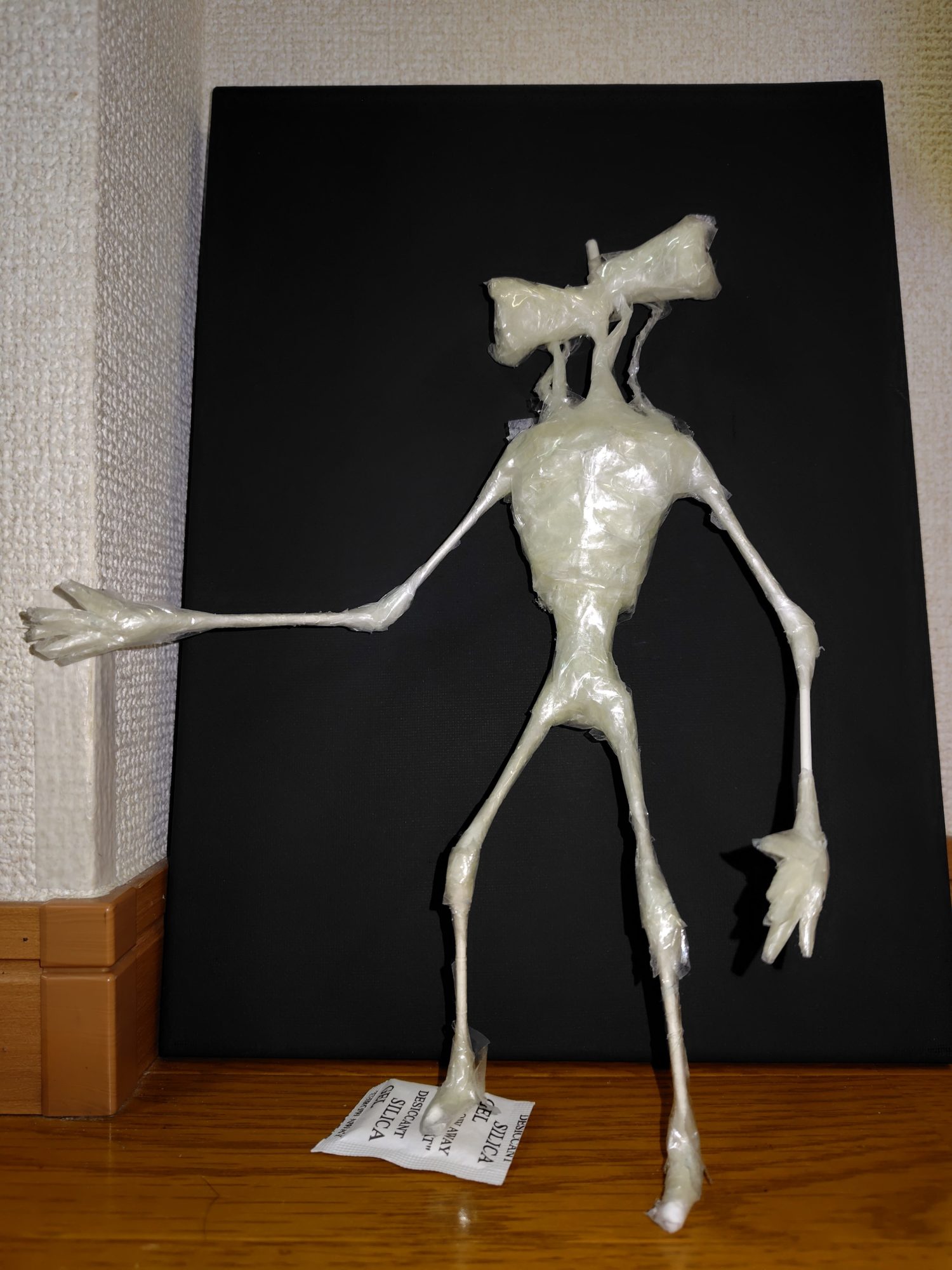 次々と生まれてくるサイレンヘッドたち、その“生産ライン”にまず圧倒されました。1週間に2〜3体というペースは、ただ好きなだけでは到達しない、創作への情熱そのものですね。材料の選び方、骨格の作り方、腕や脚の細い部分の強度の出し方など、一つひとつに試行錯誤の跡が見えて、まるで工房の職人のようです。
