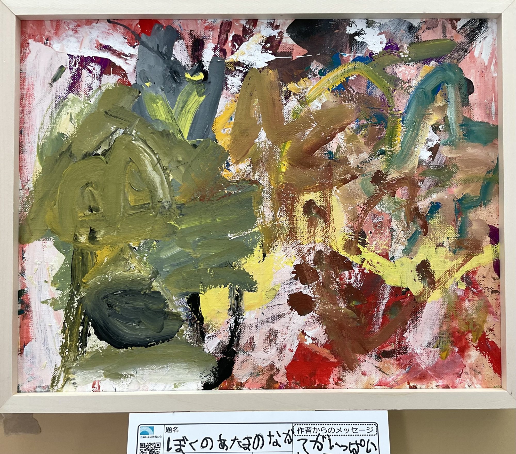 「ぼくのあたまのなか」という題名から、目に見えない世界をそのまま出してみよう、という強い気持ちが伝わってきます。形や色、配置にルールがありそうで、でも少し崩れている感じが、とても“考えている途中”らしくていいですね。頭の中は、いつも整理されているわけじゃなく、思いつきや感情が同時に動いているもの。そのごちゃごちゃした感じを、無理にまとめず表しているところに、ta-bowさんらしさを感じました🧠✨