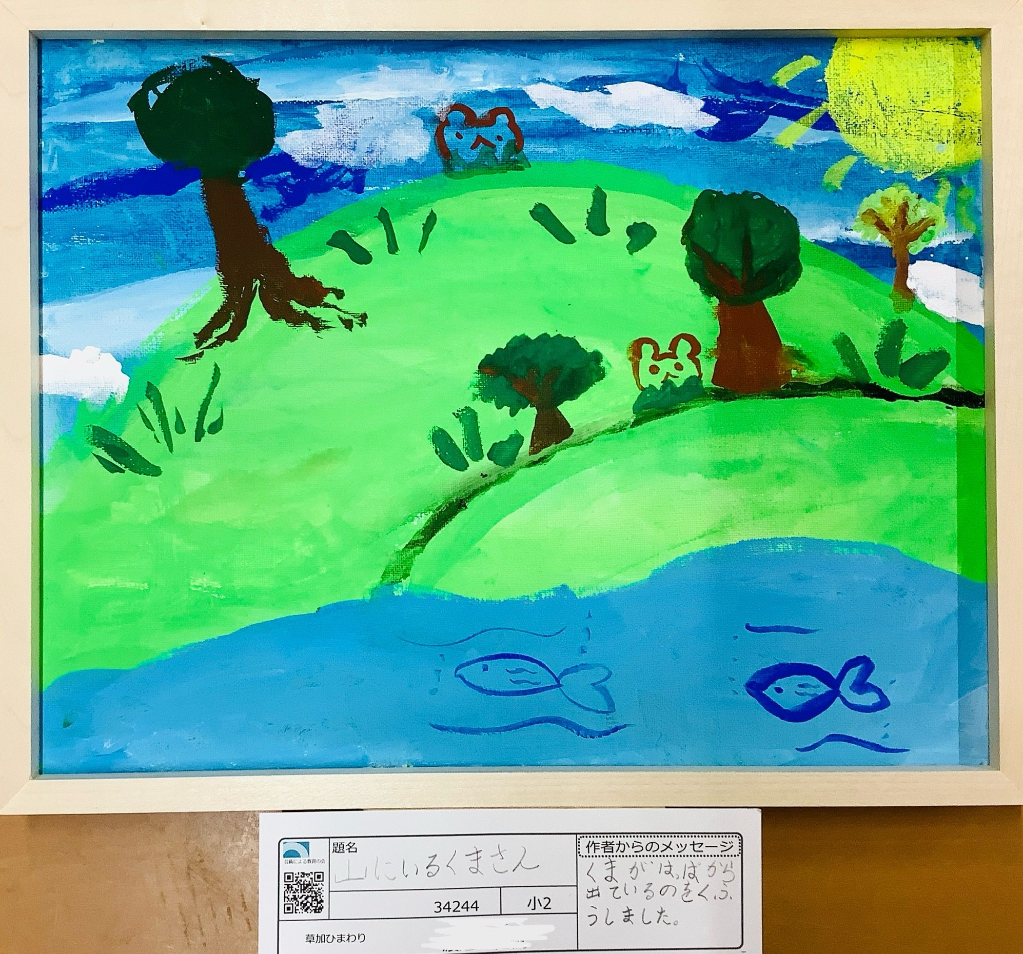 私はこの絵から、安心できる場所でゆっくり時間が流れている感じを受けとりました🌳🐻🌊