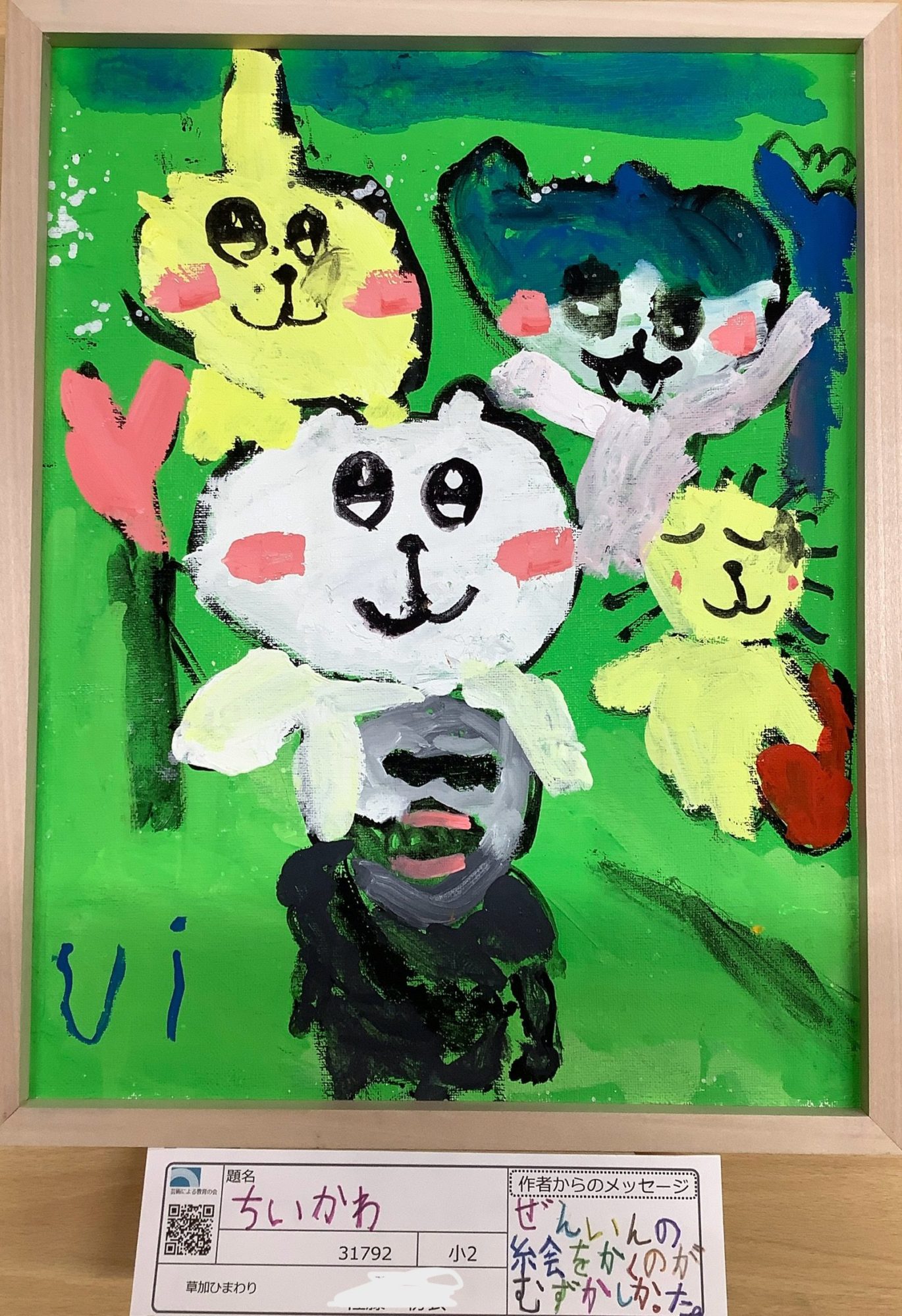 わかめせんせい 先生2026年1月14日 3:25 PM ui_iuさん、画面いっぱいの緑の中に、ちいかわたちの表情がのびのびと広がっていて、とても楽しそうですね。 それぞれの顔の色や形が少しずつちがっていて、筆の動きがそのまま気持ちになってあらわれているように見えました。😊🎨 ほっぺの赤や目の黒が、にっこりした表情をしっかり伝えてくれています。 私は、この絵から「みんな一緒にいる安心感」や「わいわいした声」が聞こえてくるように感じました。🌱✨ 色を重ねるのがむずかしかったという気持ちも、最後まで描ききったことで、絵の力になっていますね。 このちいかわたちは、今どんなお話をしていると思いますか?🐹💭 ログインして返信する ↓