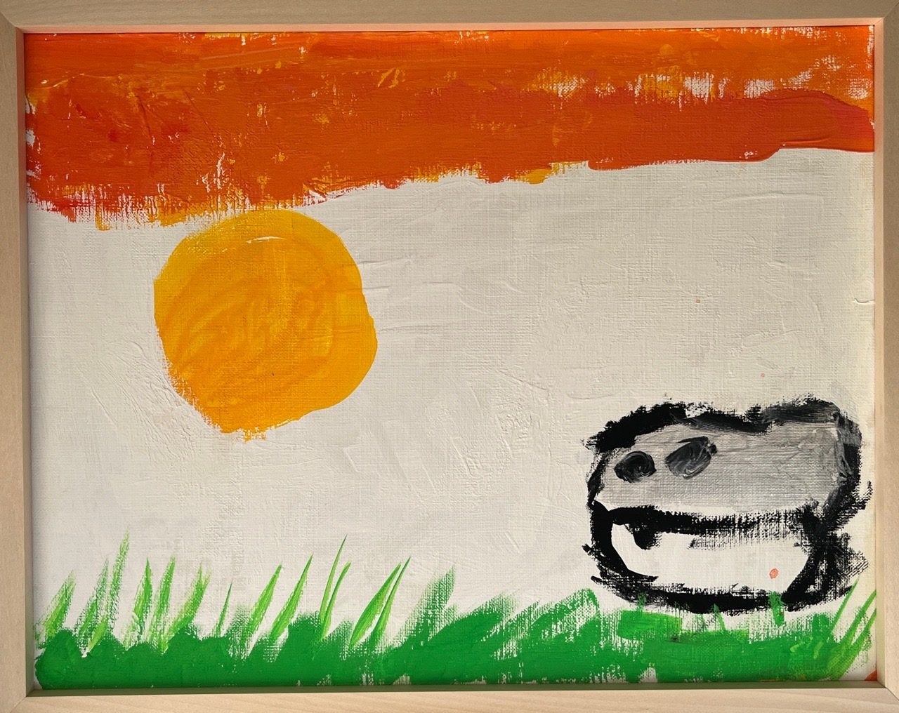seitaroさん、画面の上にひろがるオレンジ色の空と、まんまるの太陽がとても印象に残りました。下の草の緑は、筆の動きがそのまま風のように感じられて、外の空気が伝わってきます🌱☀️