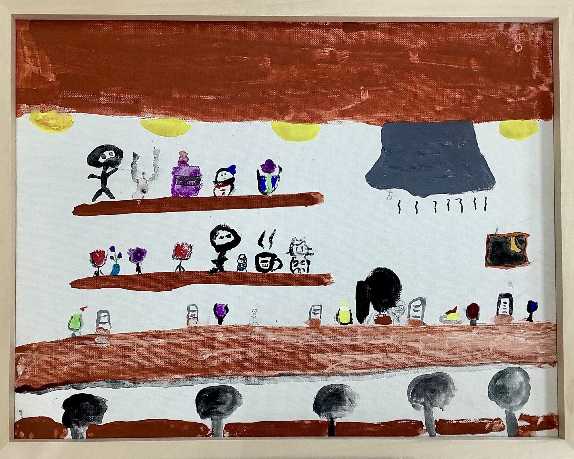 わかめせんせい 先生2026年1月14日 4:13 PM sakuranoguchiさん、 「棒人間バー」という題名どおり、カウンターに並ぶ棒人間たちや、棚の上のグラスや小物がとても丁寧に描かれていて、ここが“集まる場所”だということが自然と伝わってきます。🍺 茶色で重ねられた棚や床の色からは、少し落ち着いたバーの空気が感じられ、明るい色の小さなモチーフがリズムをつくっていますね。✨ 私はこの絵を見て、静かだけれど、それぞれが自分の時間を楽しんでいる場所のように感じました。🙂 このバーで、いちばん長く座っていそうな棒人間は、どんな気持ちでそこにいると思いますか?🍸 ログインして返信する ↓