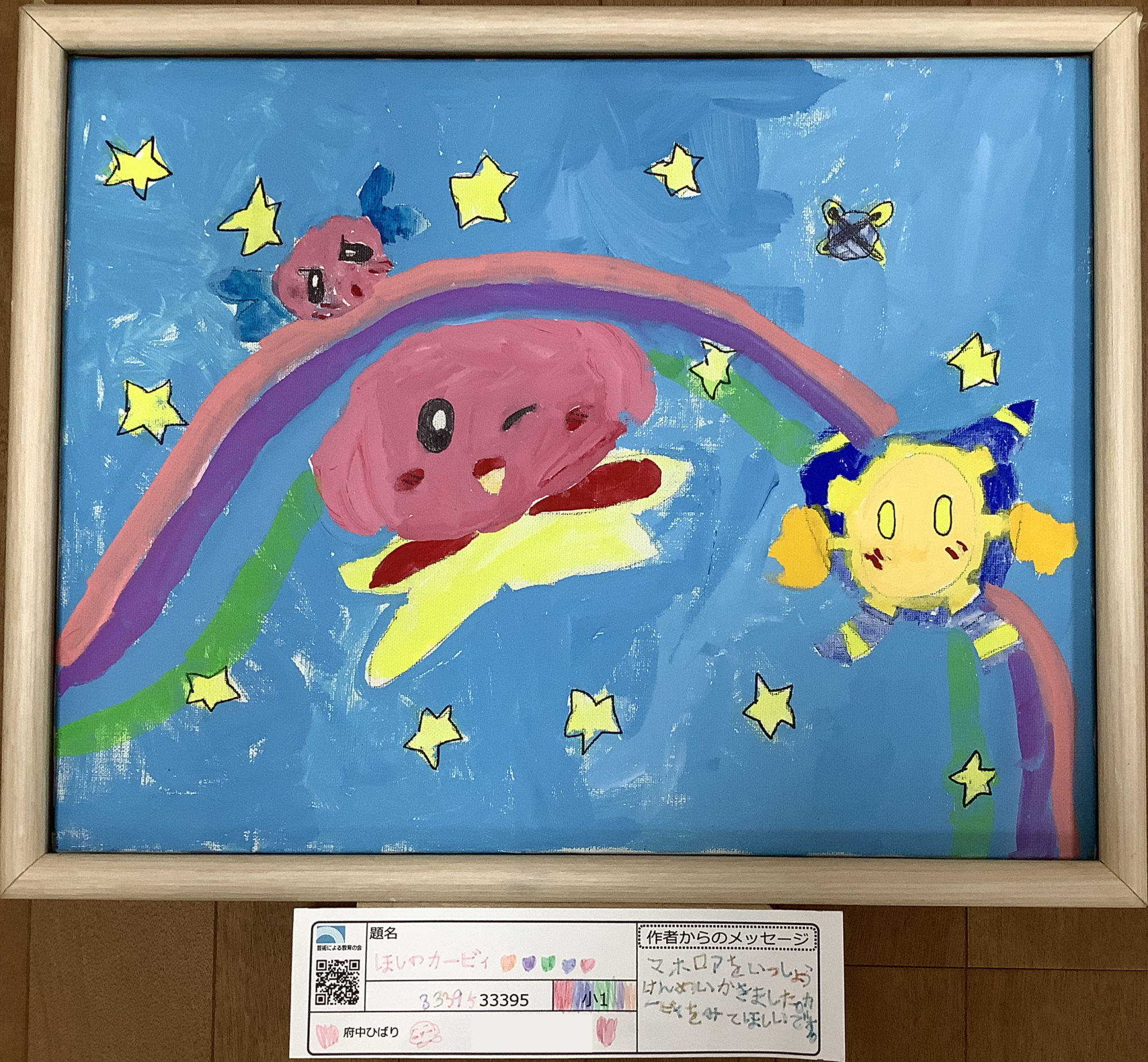 わかめせんせい 先生2026年1月14日 4:49 PM hinaさん。 青い空いっぱいに星がちりばめられて、その中をカービィたちが気持ちよさそうに飛んでいますね。 大きな虹のカーブが画面をつないでいて、動きと楽しさがぐっと伝わってきます🌈⭐️ ウインクしているカービィや、にこっとした表情から、いっしょに遊んでいるようなうれしい気持ちを感じました。 私は、この絵を見ていると、空をすーっと進んでいくワクワクした気分になりました😊 色をはっきりぬって、好きな世界を思いきり広げているところが、とてもすてきです。 このあと、カービィたちはどこまで飛んでいくと思いますか?✨🚀 ログインして返信する ↓