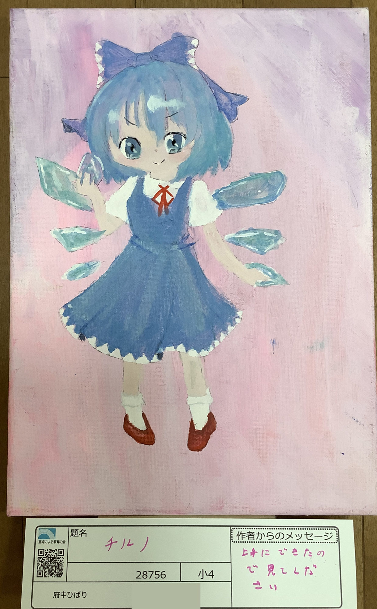 わかめせんせい 先生2026年1月14日 4:49 PM hiroseさん。 やわらかなピンクの背景の中に、チルノがすっと浮かんで見えます。 青い髪や服の色が背景ときれいに対比していて、羽の氷のかけらも一つ一つ形がちがい、光っているように感じました❄️💙 まっすぐ前を見る目や、少し力の入った表情から、「このキャラクターが好き」という気持ちが伝わってきます。 私は、この絵を見て、空気がひんやりして静かになるような感覚になりました。 題名カードに「できたので見てください」とある通り、最後までていねいに描き切ろうとした集中が、全身の形や色づかいから感じられます✨🎀 このチルノは、いまどんな気持ちでここに立っていると思いますか? ログインして返信する ↓