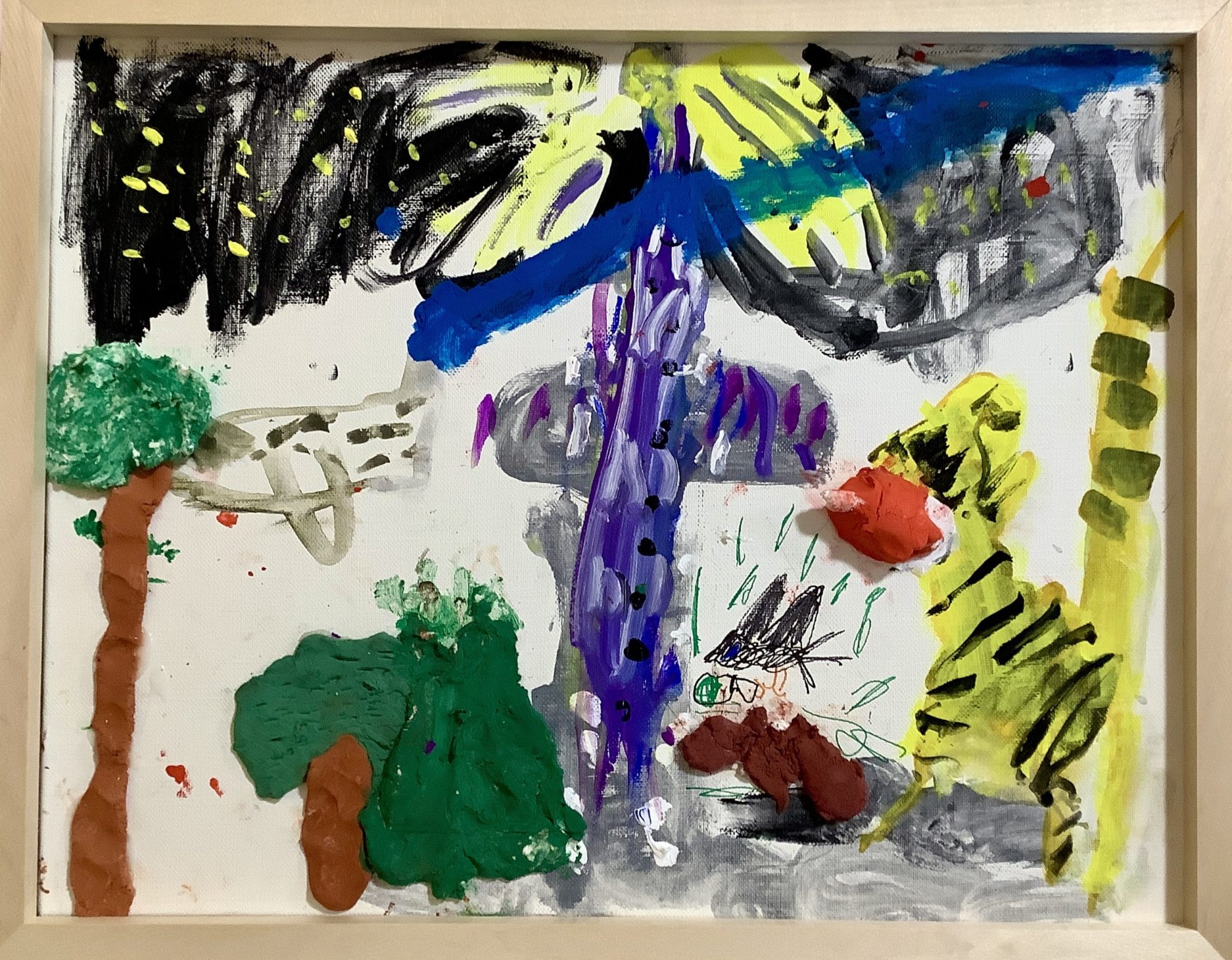 絵の具だけでなく、粘土を使って木や動物たちを立体的に表現している工夫に驚きました。