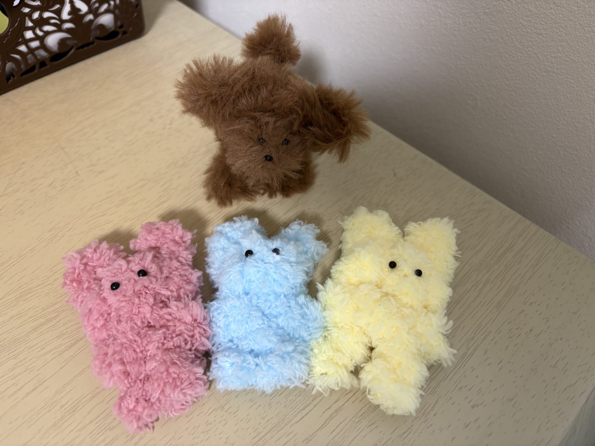ふわふわした素材の気持ちよさと、手を動かしながら形が変わっていくおもしろさが、そのまま作品に表れているように感じました。