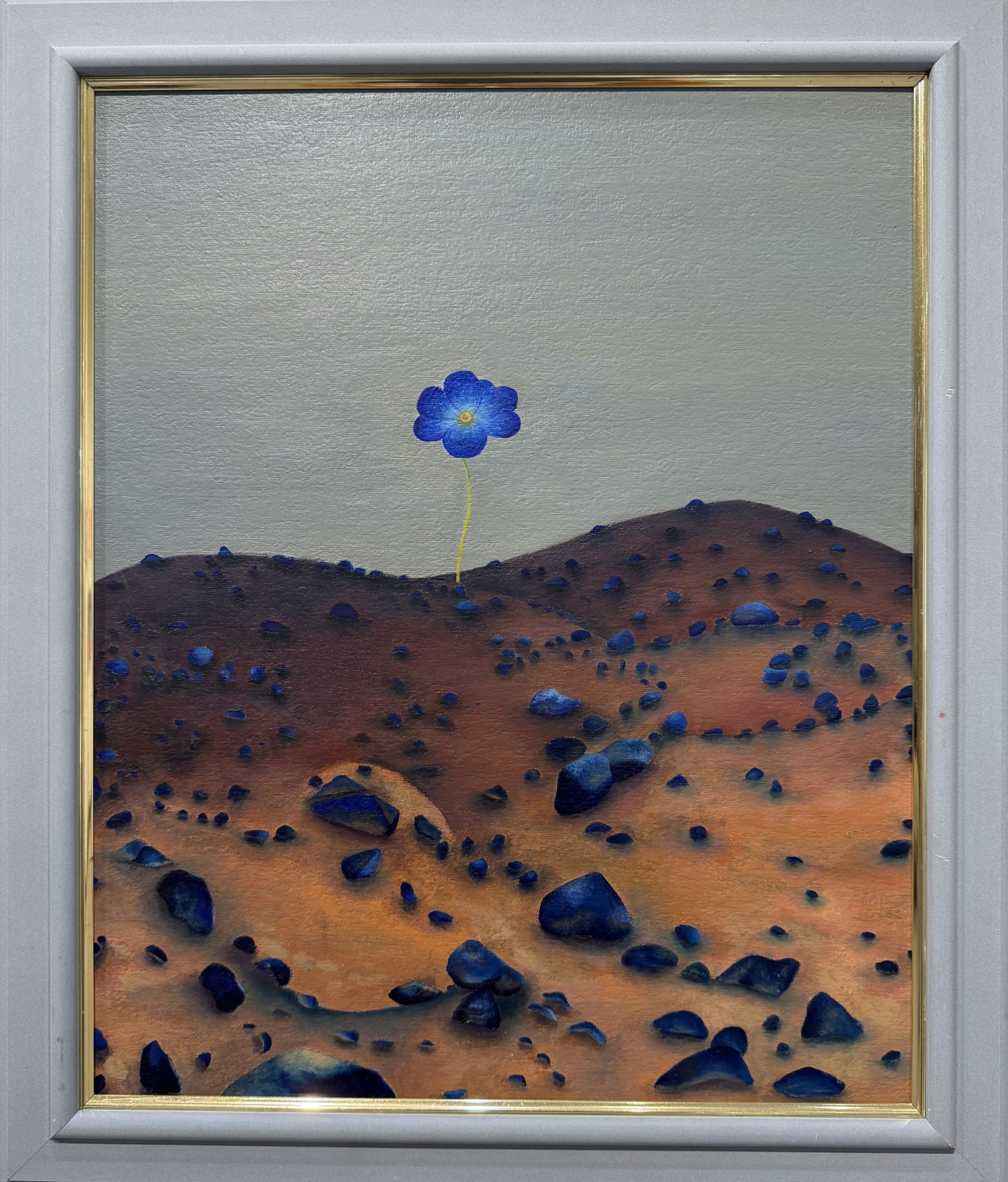 額縁も絵にぴったり。荒れ果てた地にお花が一輪だけ咲いてて、希望も絶望も感じますね。けんしママより