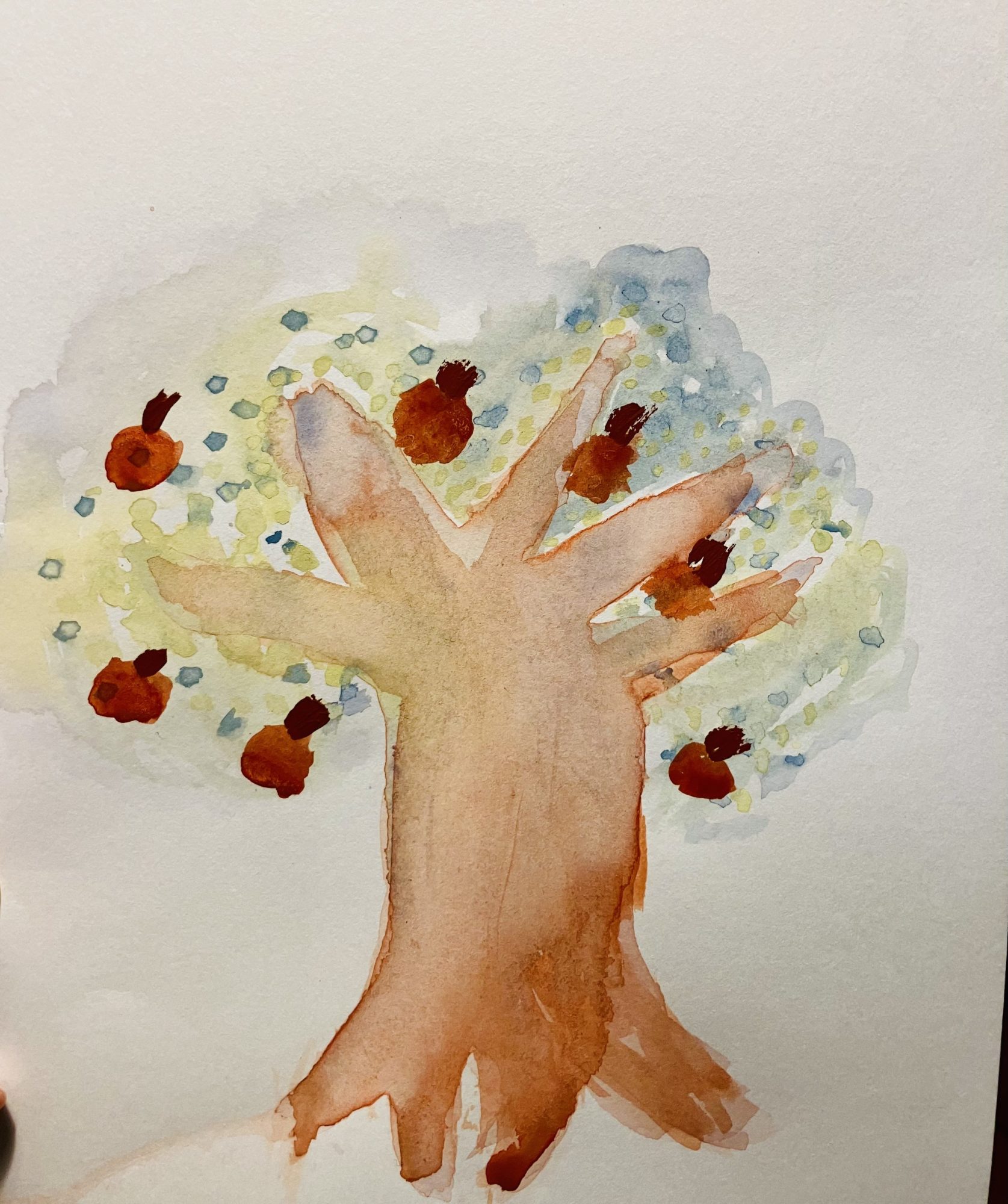 3原色だけで描かれているのにとても優しい色合いでいながら、張り切って堂々と立っている木の姿が、まるで人格も表しているようです!