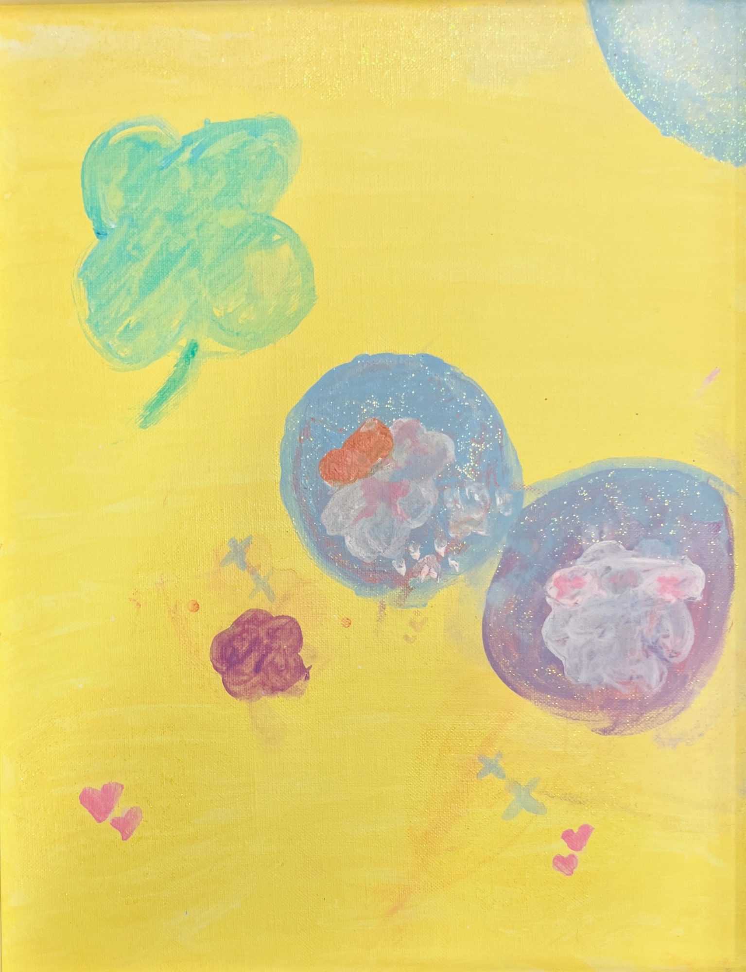 クローバーの四つの葉っぱや、散りばめられた小さなピンク色のハートを見ていると、こりちゃんさんの心が「楽しい!」や「大好き!」という気持ちでいっぱいなのが伝わってきます。表面にキラキラと輝く素材が使われているのも、まるで魔法がかかっているようで本当に素敵です。✨
