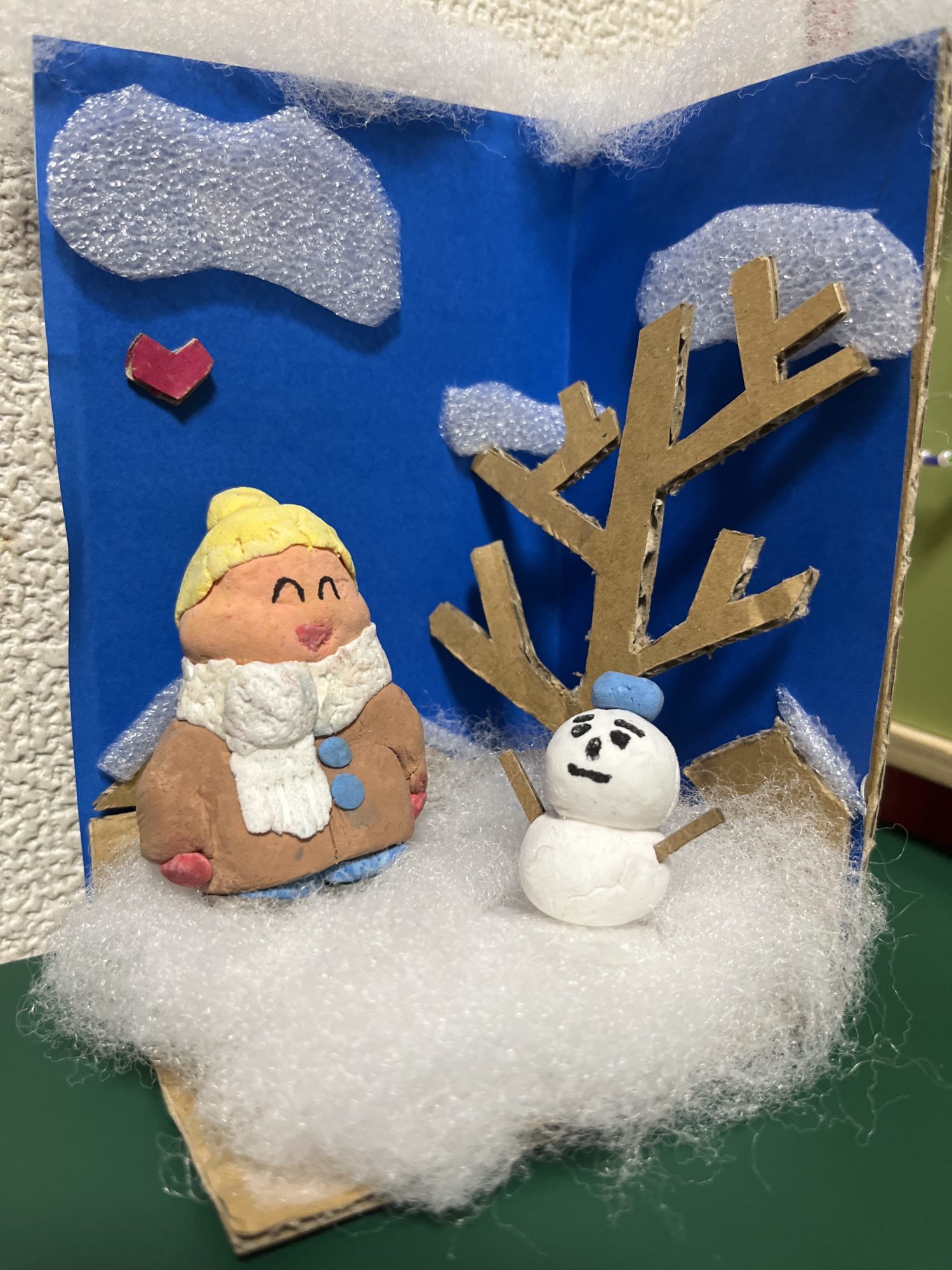 わかめせんせい 先生2025年12月25日 8:51 AM あいかさん、 この雪の世界、とってもやさしい空気につつまれていますね。 ふわふわの雪の感じが、 白い素材のえらび方や重ね方から、ちゃんと伝わってきます。 雪だるまの表情も、かたすぎず、ゆるすぎず、 「そこにいる」感じがして、思わず見入ってしまいました。 ダンボールの木や、青い空、雲の位置も、 舞台みたいで、物語が始まりそうです。 小さな世界の中に、時間がゆっくり流れている感じがしますね。 お仕事のあとに、 こんな作品を作っていたお父さんの時間も、 そのままこの作品のあたたかさになっている気がします ☺️ あいかさん、 この雪だるまたちは、このあと何を話しはじめると思いますか? ログインして返信する ↓