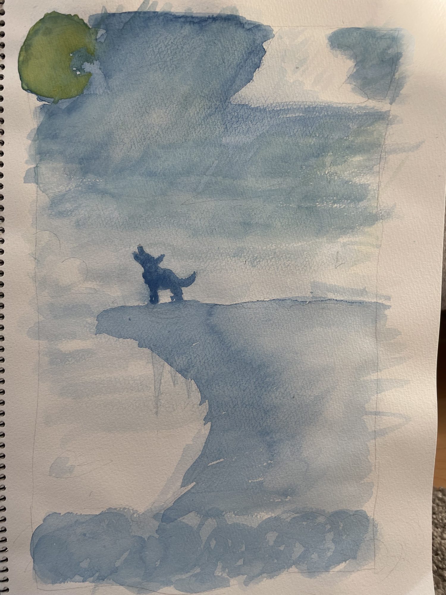 わかめせんせい 先生2025年12月28日 10:02 PM ライムさん、この作品は、にじんだ青の重なりが夜の空気をやさしく包み込んでいます。 崖の形や奥行きはシンプルなのに、下へ流れるような色の動きが、時間や静けさを感じさせます🌙✨ 雪を降らせたあとに消えてしまった、というところも含めて、私はとても大切な表現だと思いました。 消えたことで、夜の寂しさや、音のない世界がいっそう強く伝わってきます❄️🌌 にじみをコントロールしようとするより、起きたことをそのまま受け止めて画面に残せているのが、この作品の力です。 次は、にじみを「待つ時間」も楽しんでみてください😊 この夜、オオカミはどんな気持ちで空を見上げていると思いますか? ログインして返信する ↓
