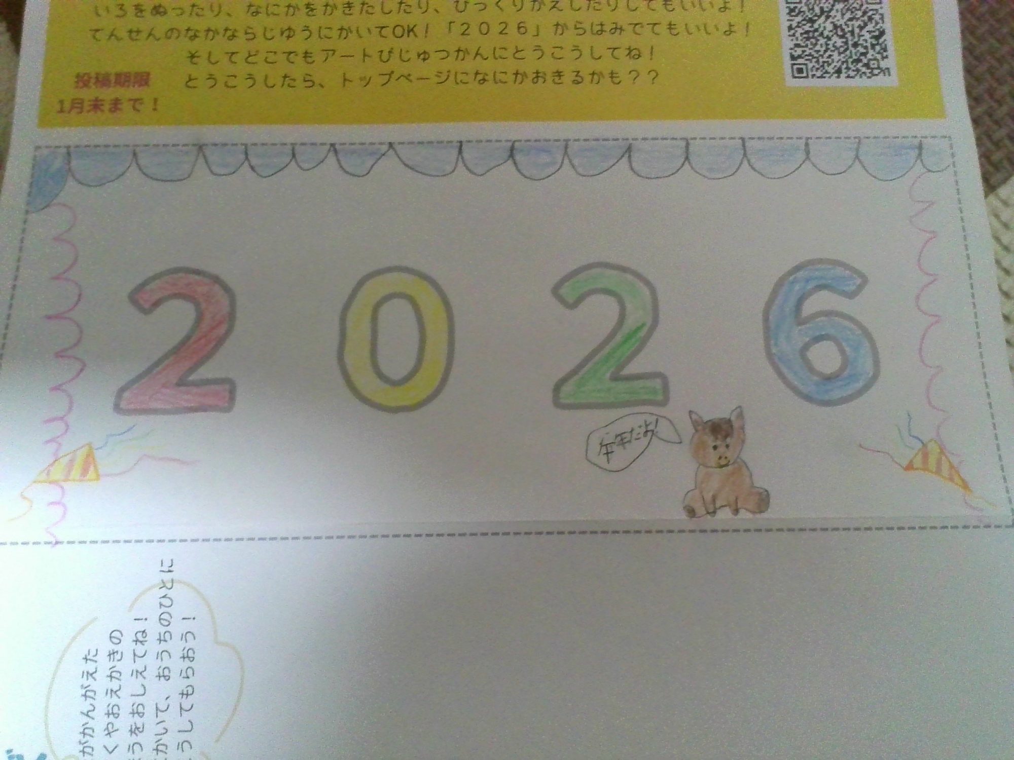 「2026」という大きな数字が、やさしい色で一つひとつていねいに塗られていて、見ているだけで新しい年を迎える準備の時間が伝わってきます。