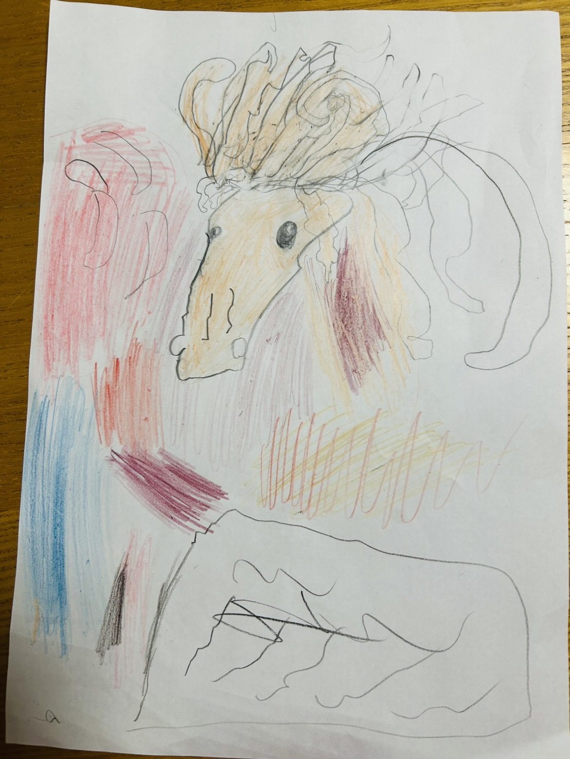 この馬は、どんな気分で走っているところを描いたのかな?それとも、止まっている瞬間でしょうか?😊
