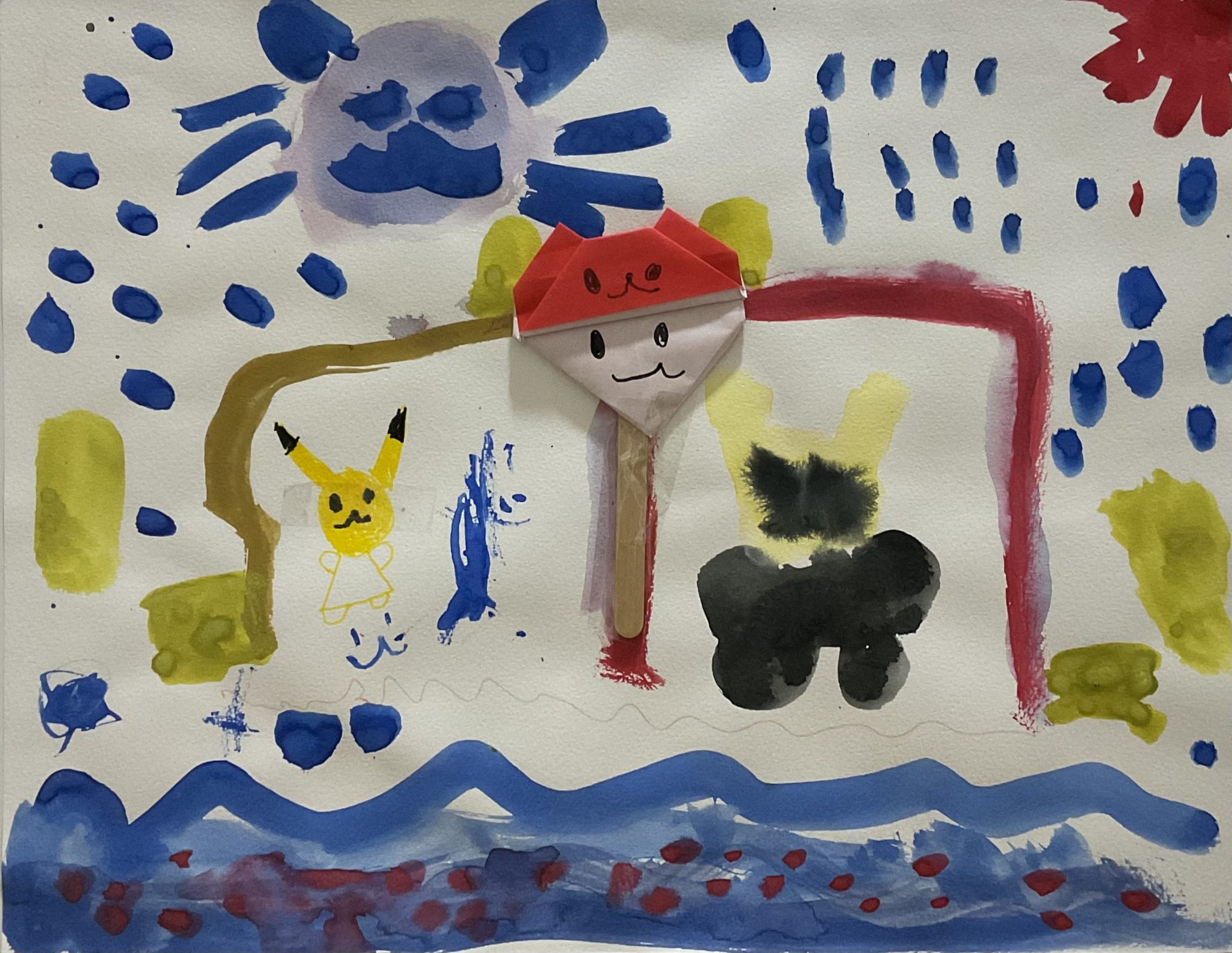 ピカチュウとわんちゃんとうみ